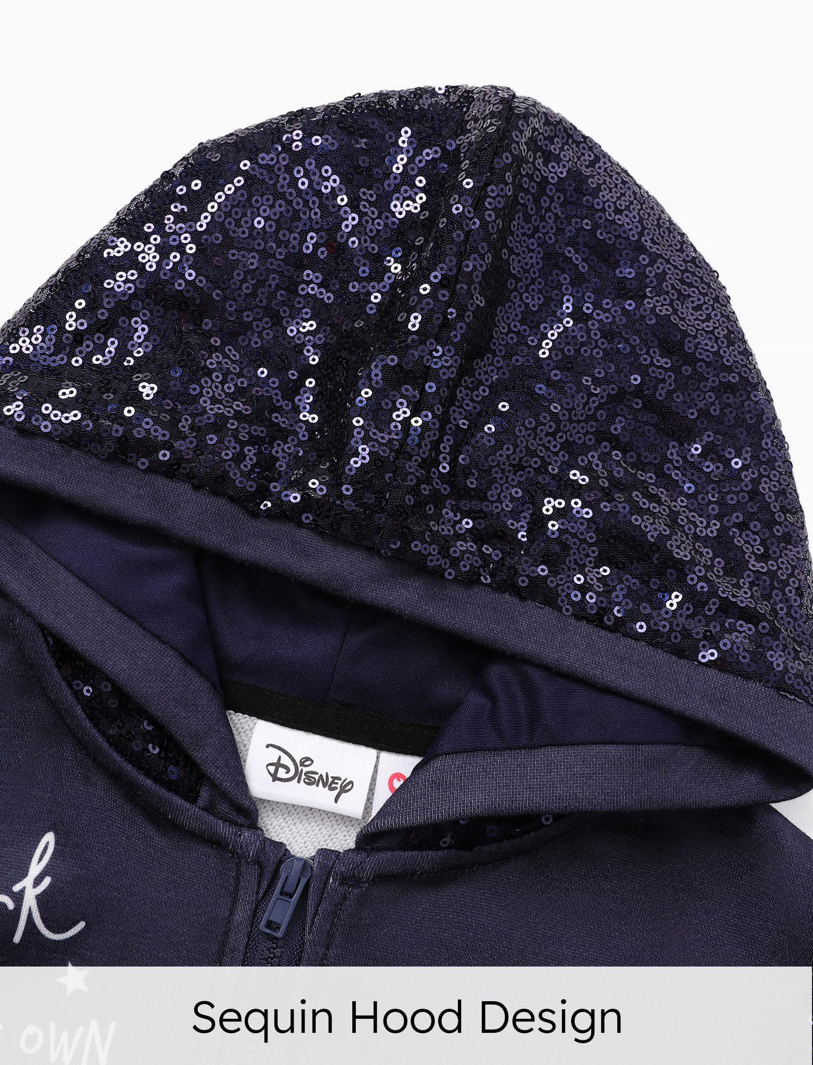 Easy Care Instructions:This Disney hoodie arrives in vacuum-sealed packaging, and wrinkles disappear with a quick wash. Sequins are on the outside, so we do not recommend machine washing. To increase the lifespan of the garment, we recommend hand washing with gentle detergent