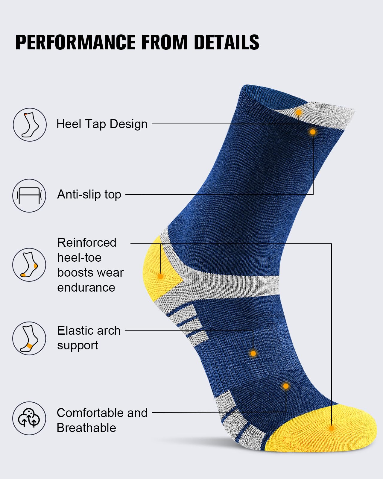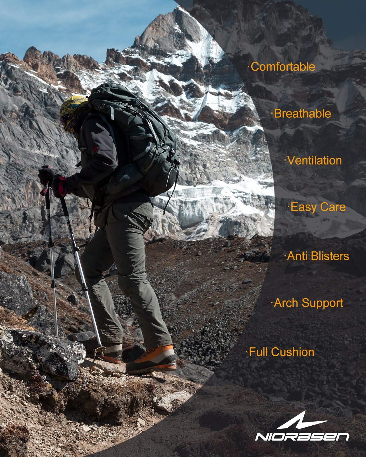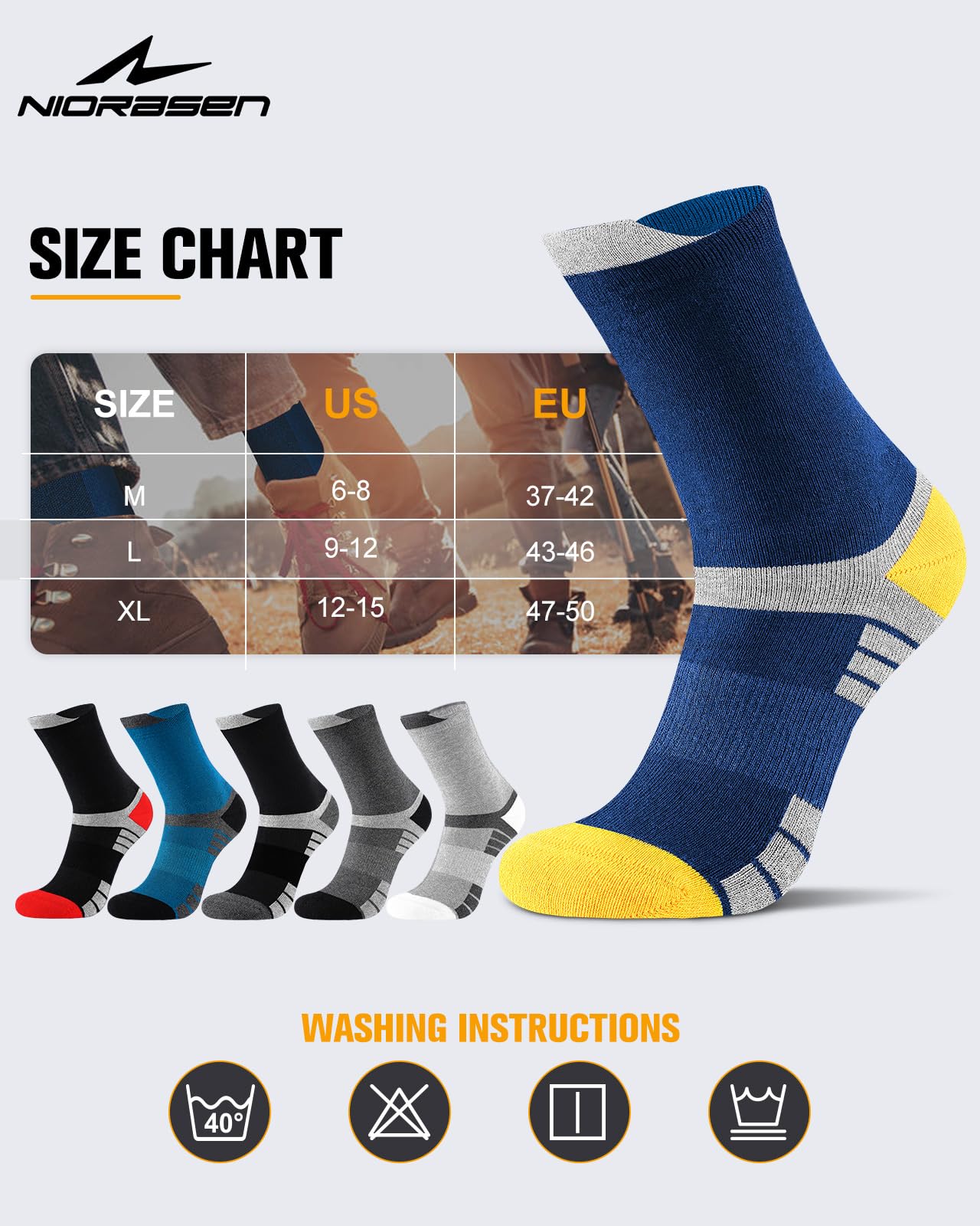 ALL-DAY COMFORT: Niorasen crew socks feature terry cushioning on the sole and instep for lasting comfort and shock absorption, helping reduce fatigue and prevent blisters during running, hiking, or daily wear