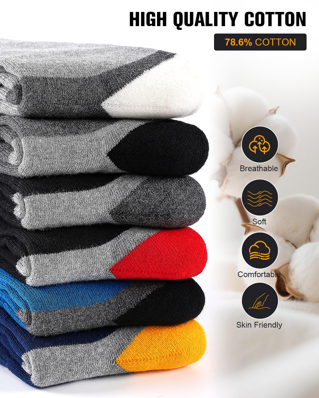 MOISTURE-WICKING COTTON SOCKS: Crafted from 78.6% premium cotton, these boot socks wick moisture to keep your feet cool, dry, and odor-free, providing optimal warmth and breathability for work, exercise, or daily wear