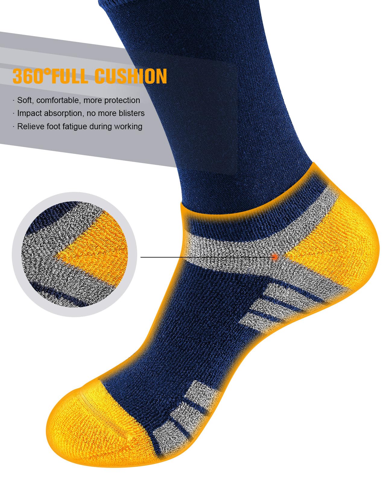 REINFORCED DURABILITY:Built with reinforced heel and toe areas for exceptional durability and extra protection in high-wear zones, men's work socks are designed to withstand daily workouts, sports, work boots, and demanding activities