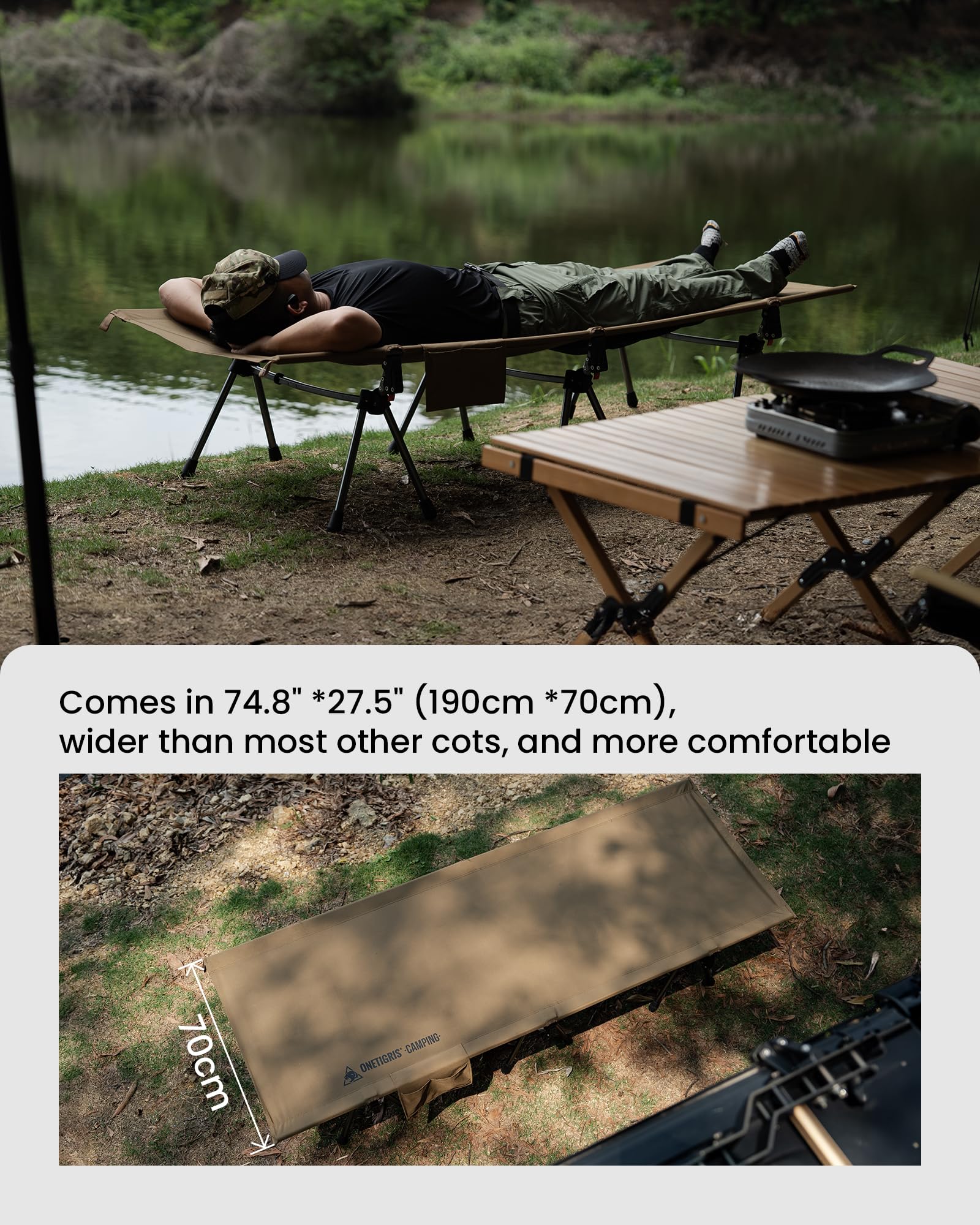 ★ 𝙇𝙖𝙧𝙜𝙚𝙧 𝙎𝙞𝙯𝙚 - 74.8" (L) *27.5" (W) (190cm *70cm), wider than most foldable cots, and of course more comfortable