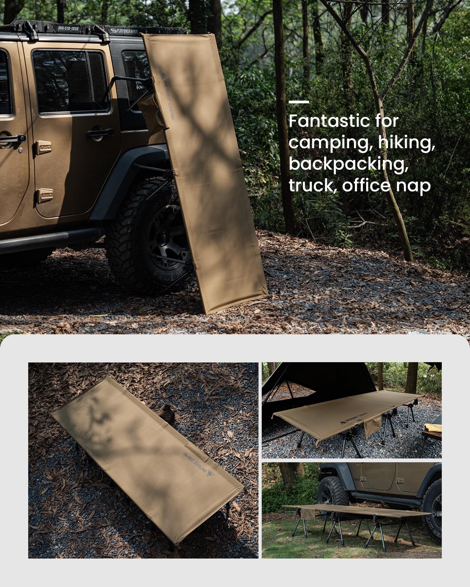 ★ 𝙎𝙥𝙚𝙘𝙞𝙖𝙡 𝘿𝙚𝙨𝙞𝙜𝙣 - A side pocket to put your gadgets for easy access, phone, power bank, snacks, camera equipment, emergency kit, etc. And a storage net underneath the camp bed for your clothes, hats or laundry, which is very handy
