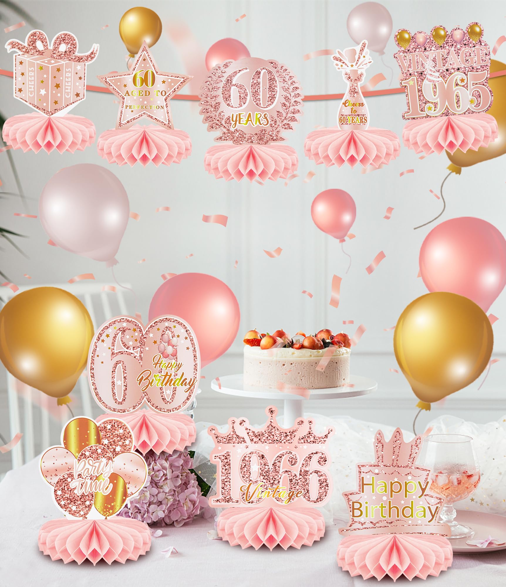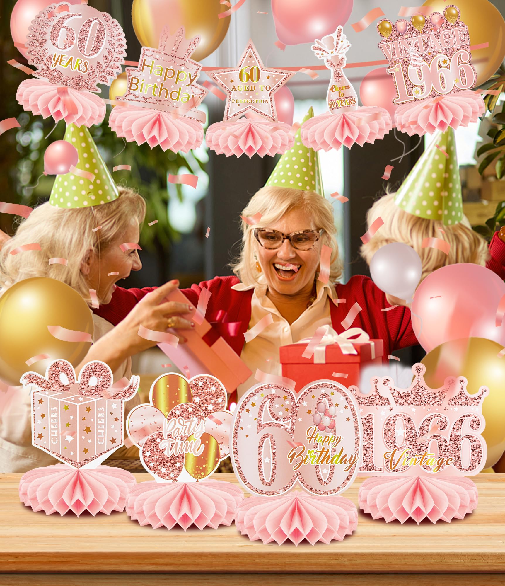 πPERFECT 60th BIRTHDAY PARTY DECORATIONS: The 60th birthday honeycomb centerpieces for women are suitable for women's 60th birthday party. You can use it as a party decorations or as photo background, so that everyone will love these chic designs. 60th birthday centerpieces for tables can decorate your home very well