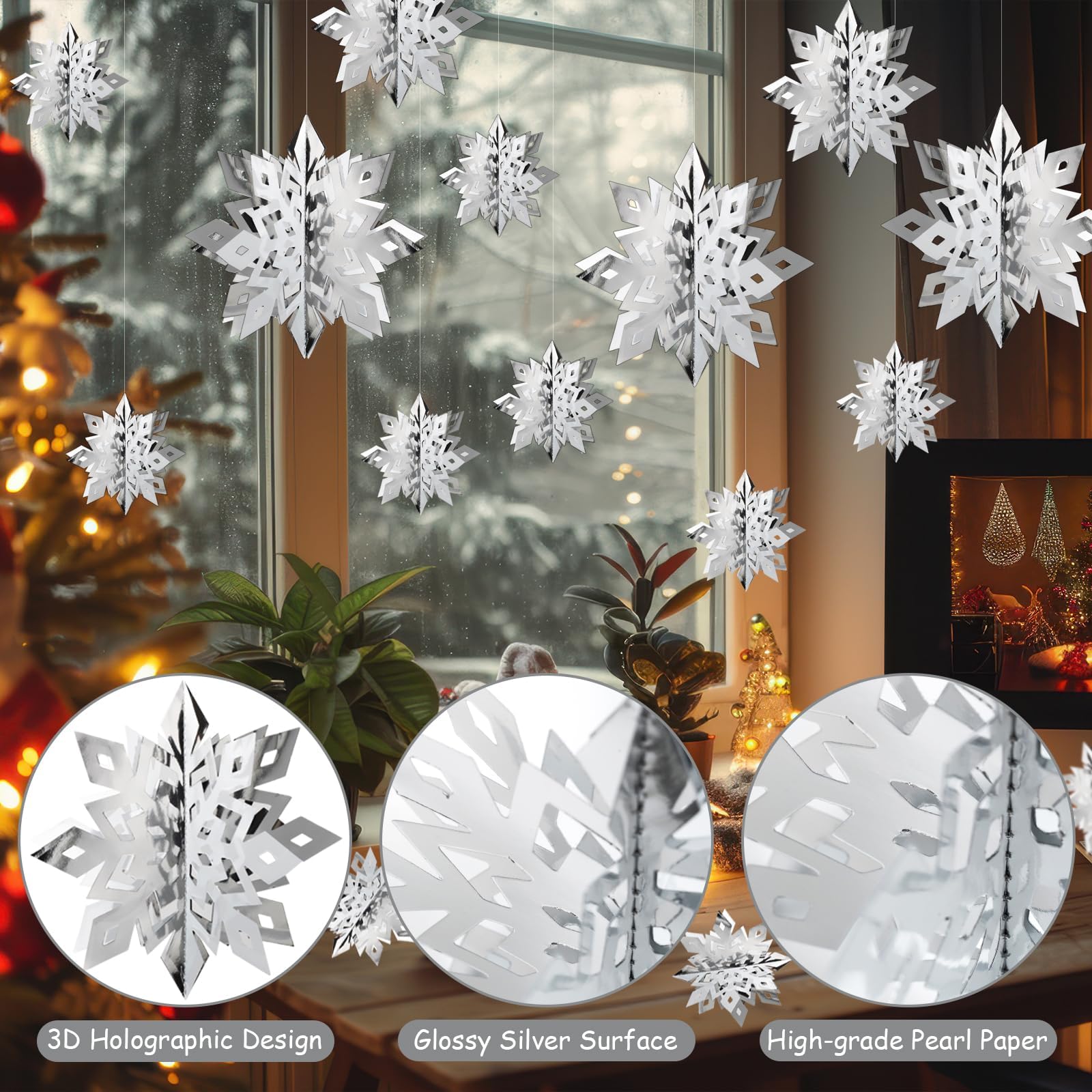Value Pack: This Christmas ornaments set includes 24pcs 3D silver snowflakes in three different sizes, offering you various options to elevate your holiday decorations. Just fold along the sewn seam to create eye-catching 3D snowflakes that will sparkle beautifully under light, adding a touch of magic to your space