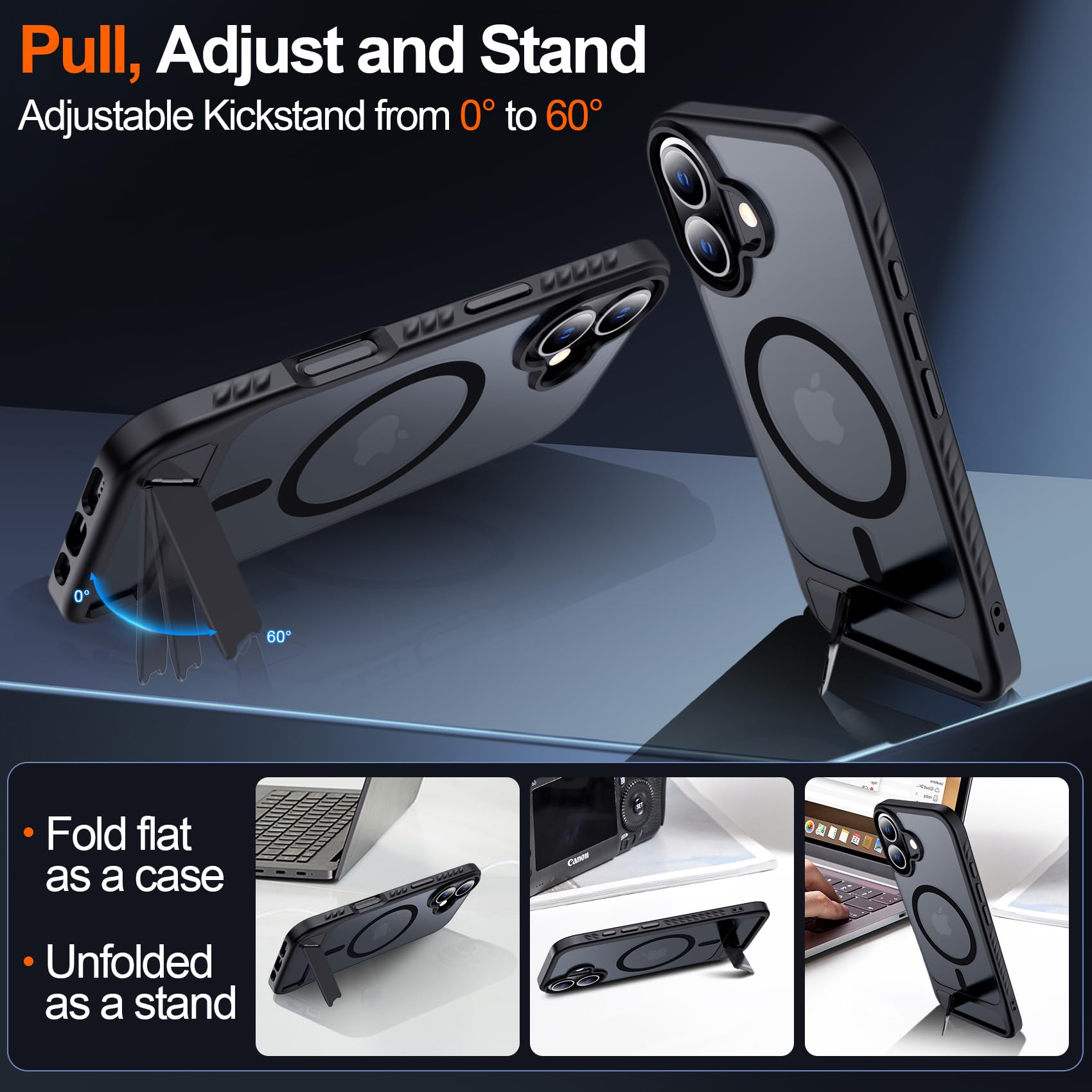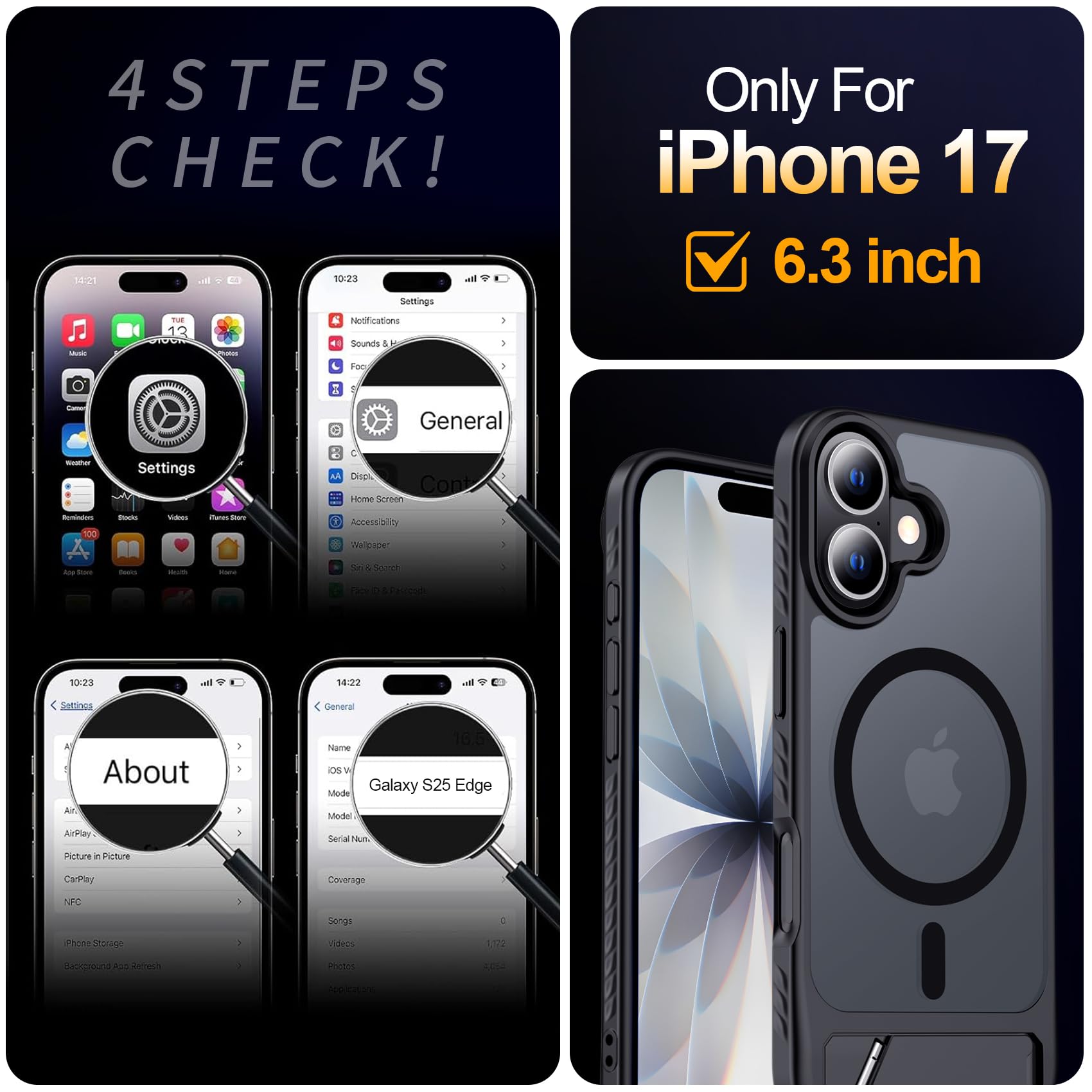 【Effortless&Invisible Stand】The stand of the case for iPhone 17 case is foldable in three way, sturdy and built to last, with built-in handy stand made by LIGHTWEIGHT YET DURABLE Aerospace-grade aluminum