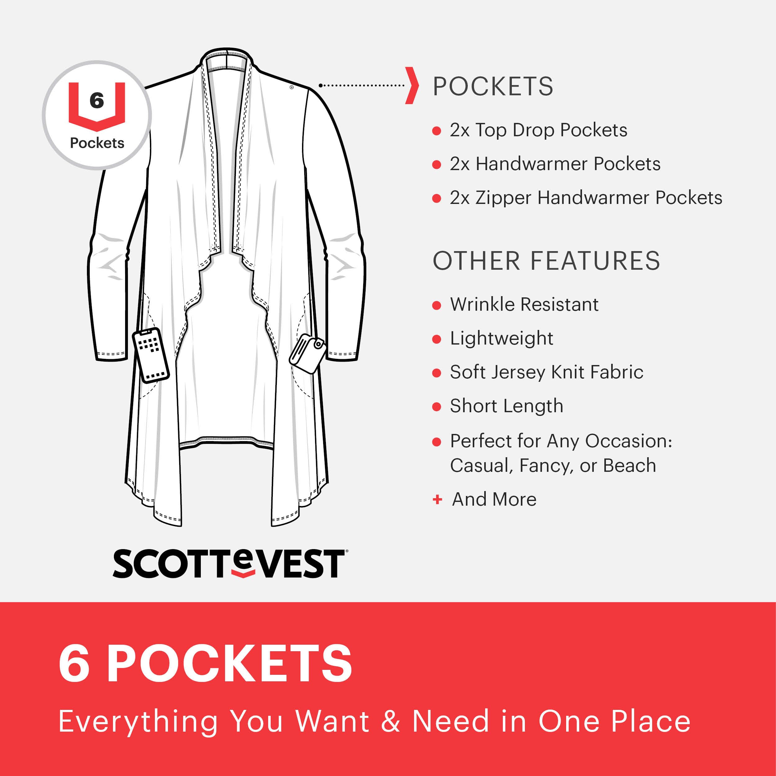 [ 6 Hidden Pockets For Travel ] - Featuring multiple concealed pockets this lightweight women's cardigan can hold all of your essentials while traveling, working, shopping, golfing, or simply running a few errands