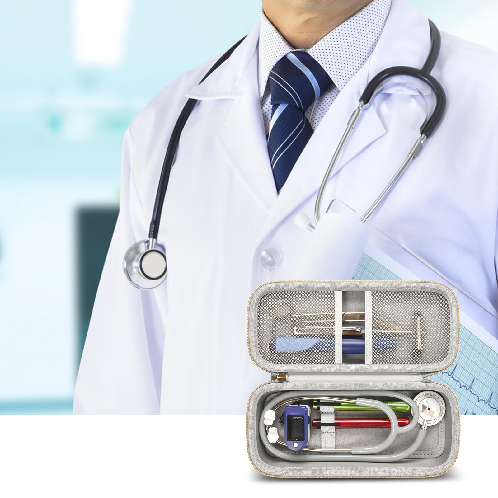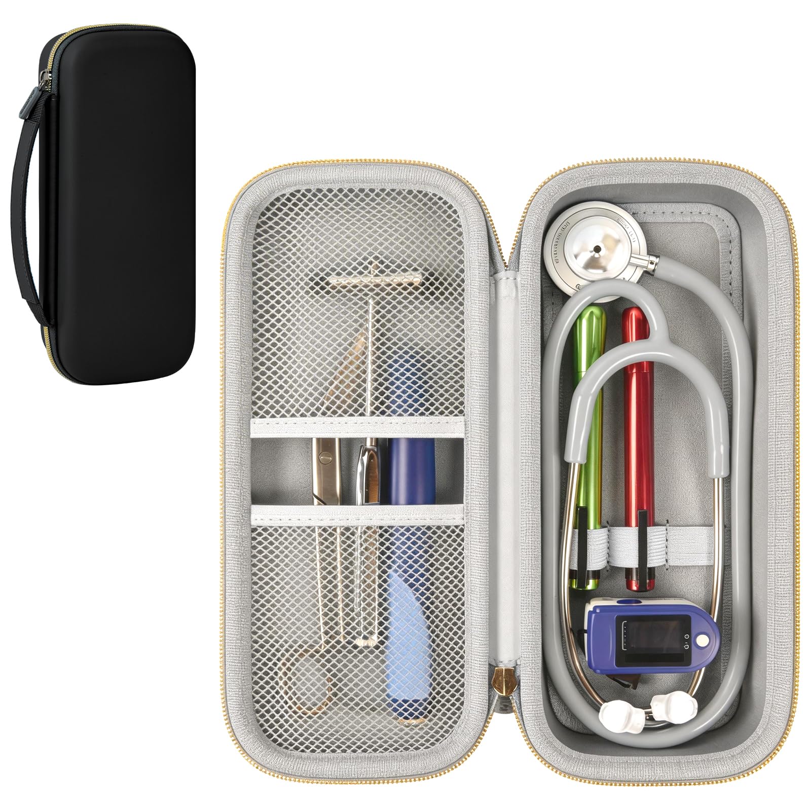 Stethoscope Case of Comprehensive Protection: This case is made of the hard EVA materials, the anti-static, shockproof layer and fluffy fabric inner layer fully padded and effectively absorb impacts, compact fully protect the stethoscope, neurological reflex hammer, medical thermometer, pulse oximeters, and other Littman stethoscope accessories. Prevent shaking and loss; avoid stethoscope breaking.