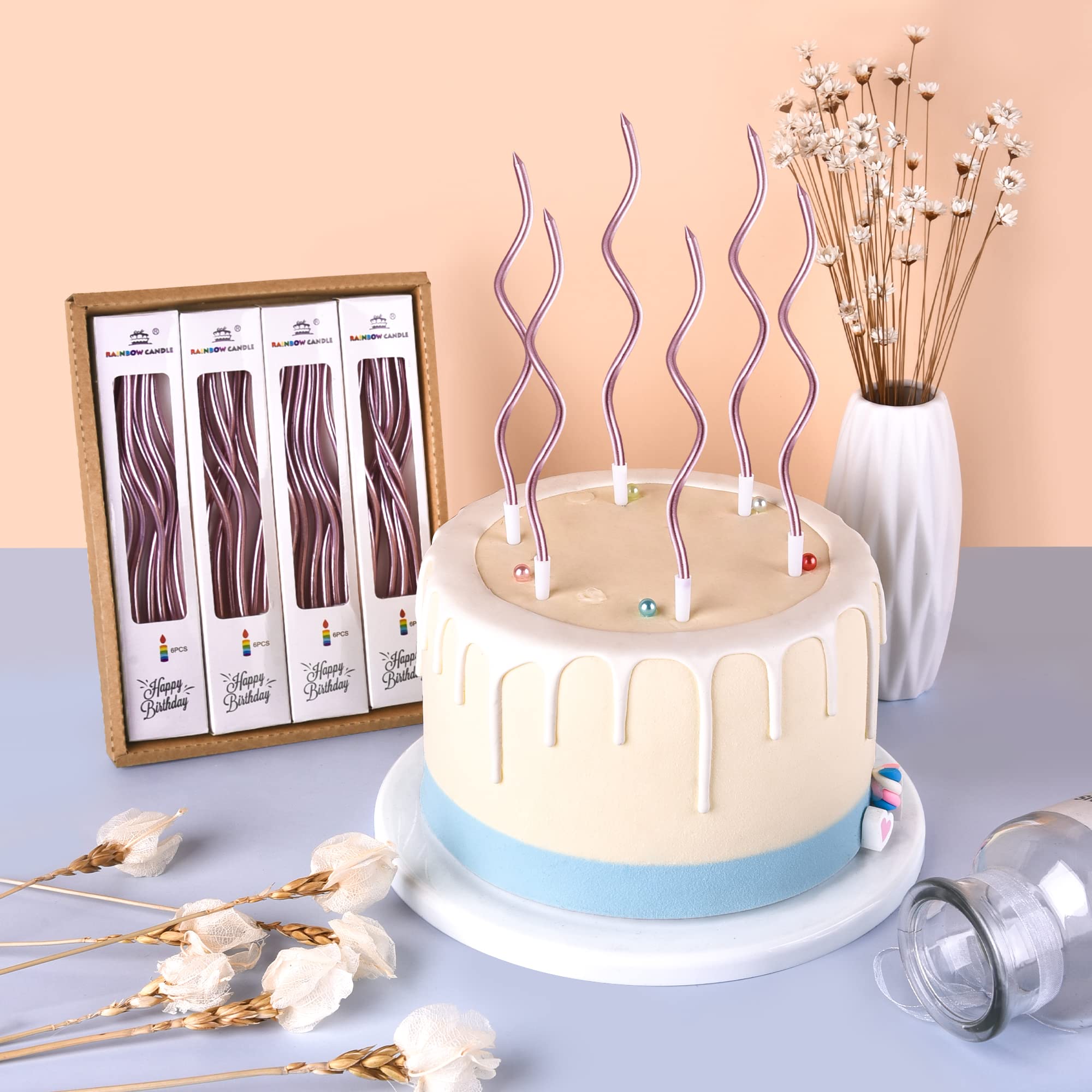 New: 24 long, thin & rose gold metallic spiral cake candles designed to make your cake and birthday a unique and truly inspiring event.