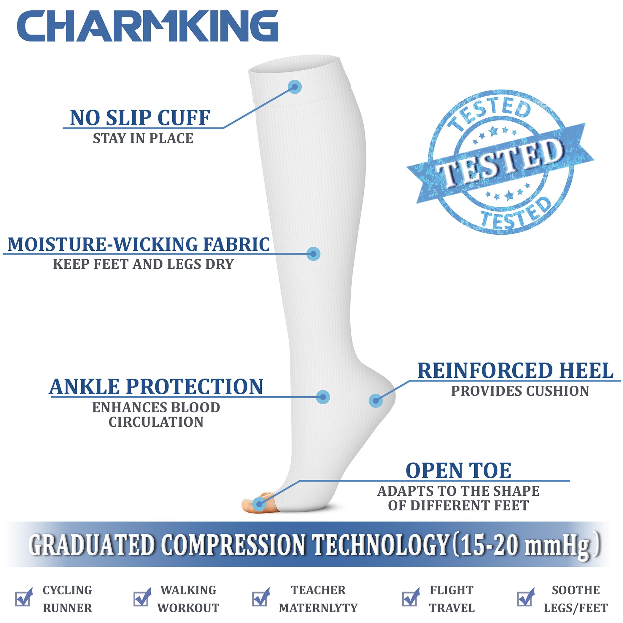 COMPRESSION SOCKS - We intend combining fashion, technology and science to bring you the triple comfort without. The material of our compression socks are upgraded with nylon percentage from 40% to 85%. Delivers 360-degree stretch for greater flexibility and durability. Breathable high performance fabric keeps an optimal temperature.