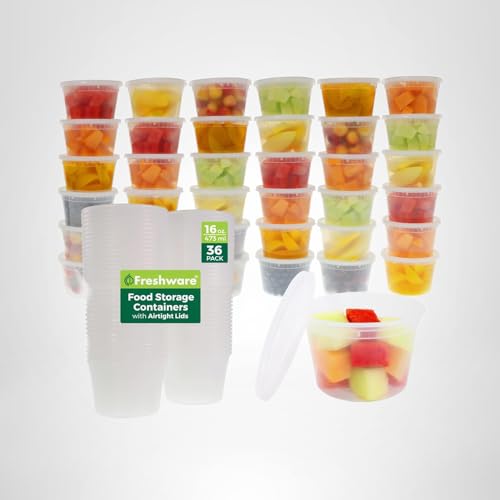 Freshware Food Storage Containers [36 Set] 16 oz Plastic Deli Containers with Lids, Slime, Soup, Meal Prep Containers | BPA Free | Stackable | Leakproof | Microwave/Dishwasher/Freezer Safe