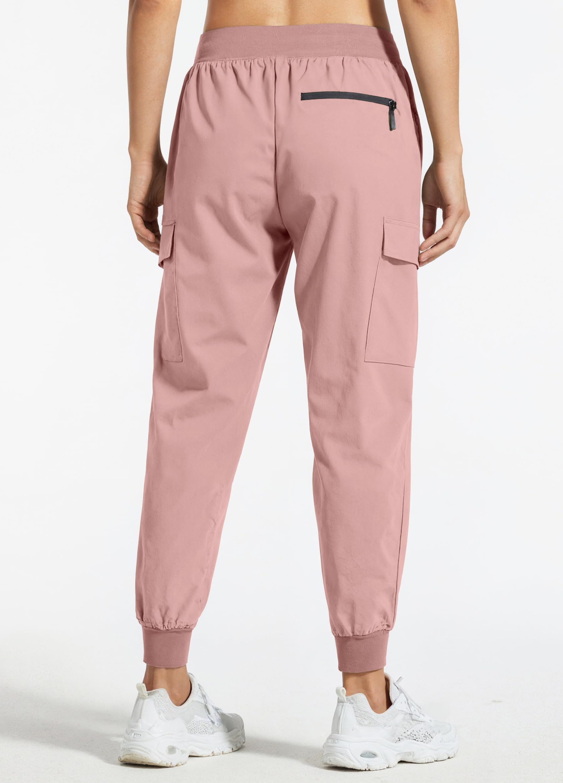 Elastic wasitband with drawstring for a adjustable fit. Stretchy ankle cuffs for a sporty look and easy wear