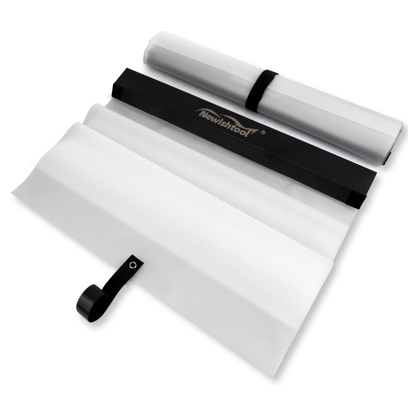 Each window tint door panel cover width is 43.3cm, the maximum width of stacking 2 sheets can reach up to about 86cm, the length is 76cm, the width and the length are enough for both front or rear doors, provides overall protection of water damage.