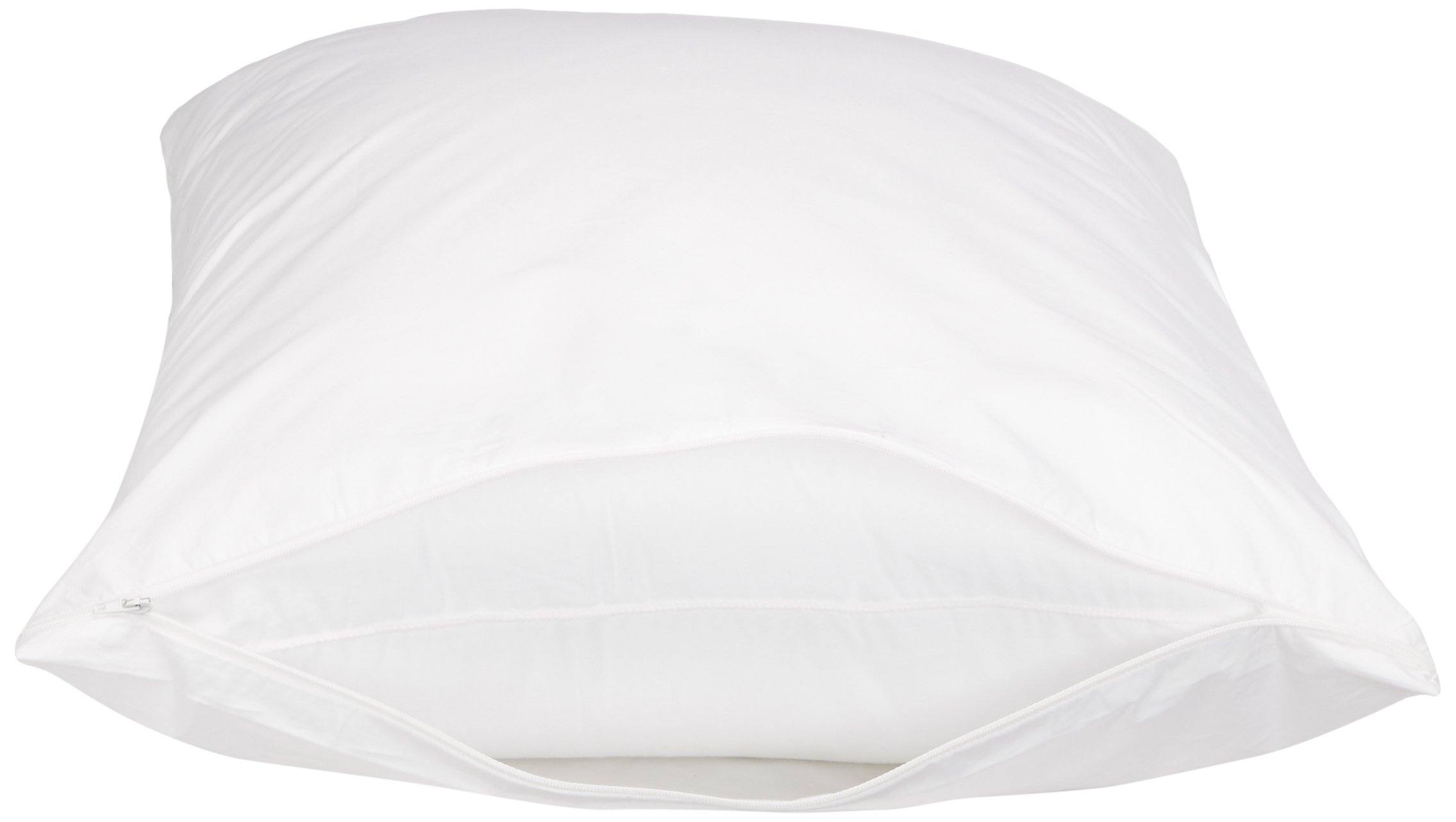 Product Description This pillow case protector with zipper is expertly crafted to offer a serene environment by minimizing exposure to dust and common allergens. The soft, breathable cotton standard pillow cover isn't just functional—it's an elegant addition to your home decor. Available in a crisp white hue, this cover complements many bedroom styles while shielding your pillows. Each hypoallergenic pillow case measures 21 by 27 inches, fitting snugly over standard pillows, and is proudly certified by Made in Green by OEKO-TEX, providing high safety and environmental standards. The convenient machine washability of these cotton pillow covers makes upkeep effortless, further supported by their durable construction. From the Manufacturer AmazonBasics