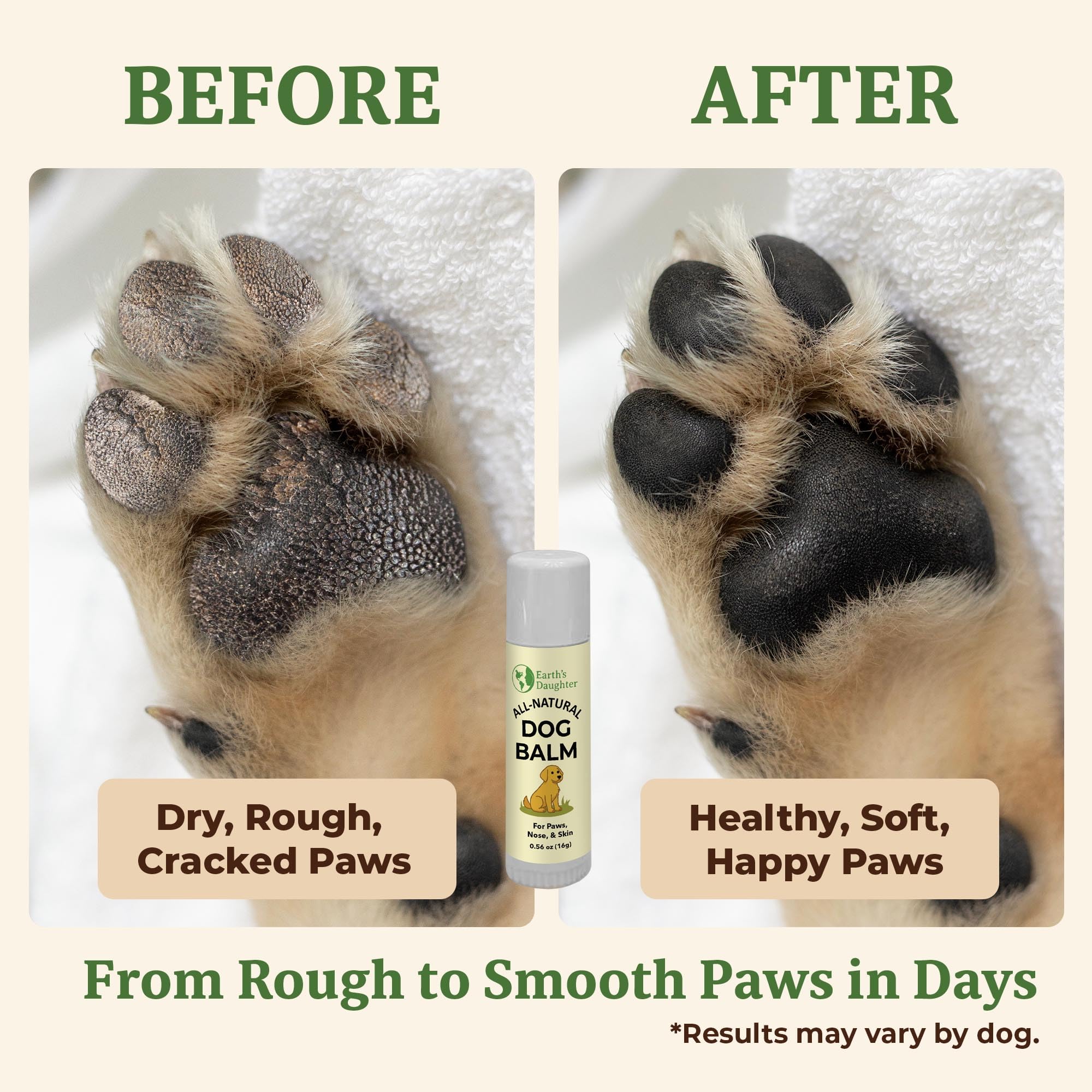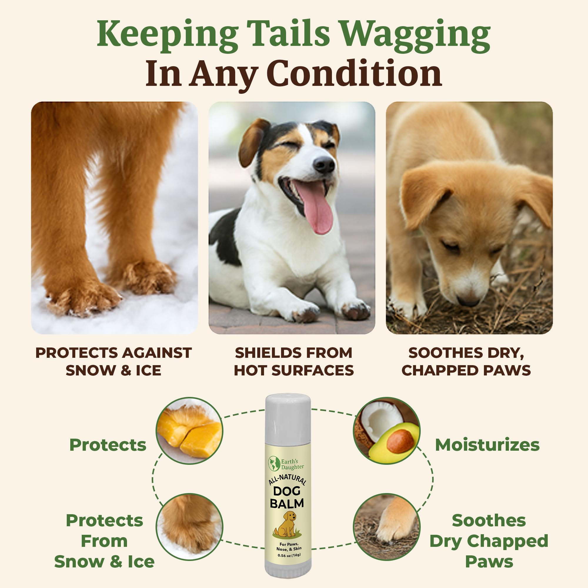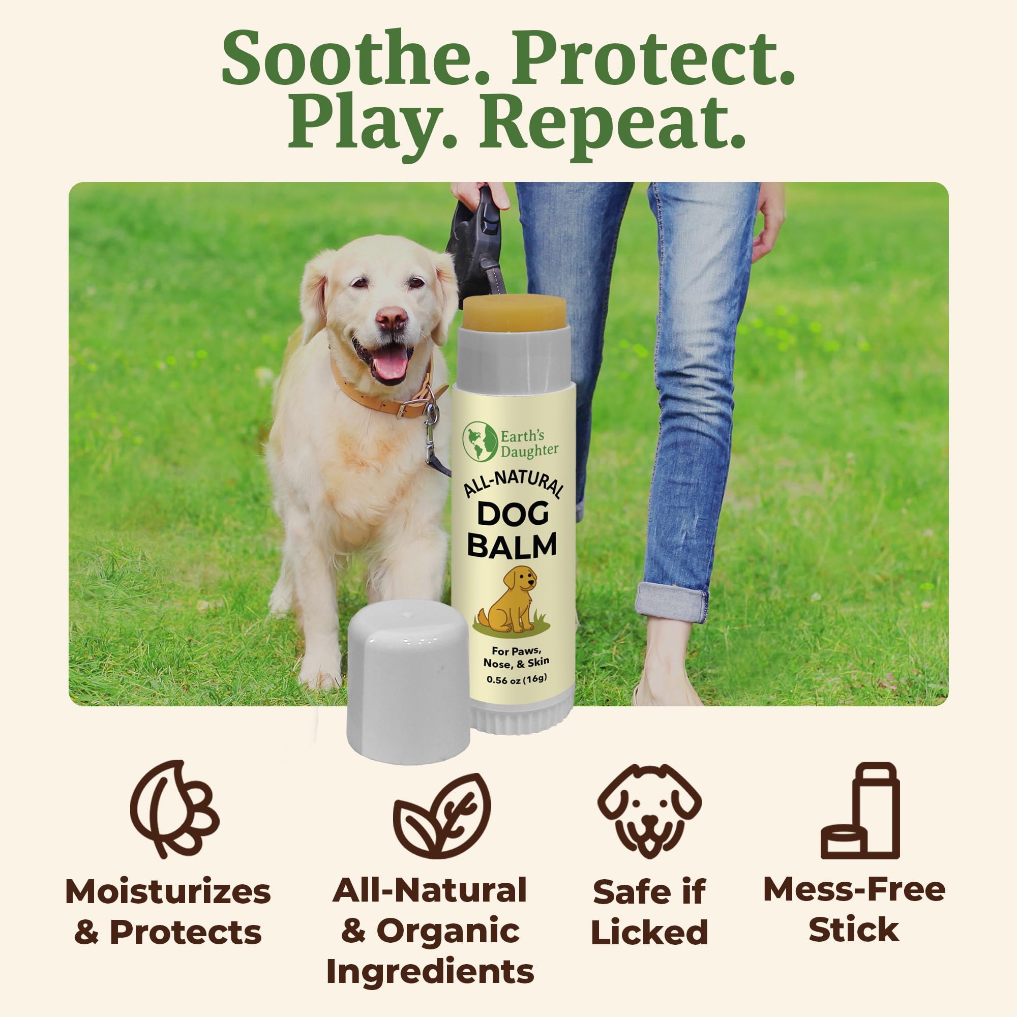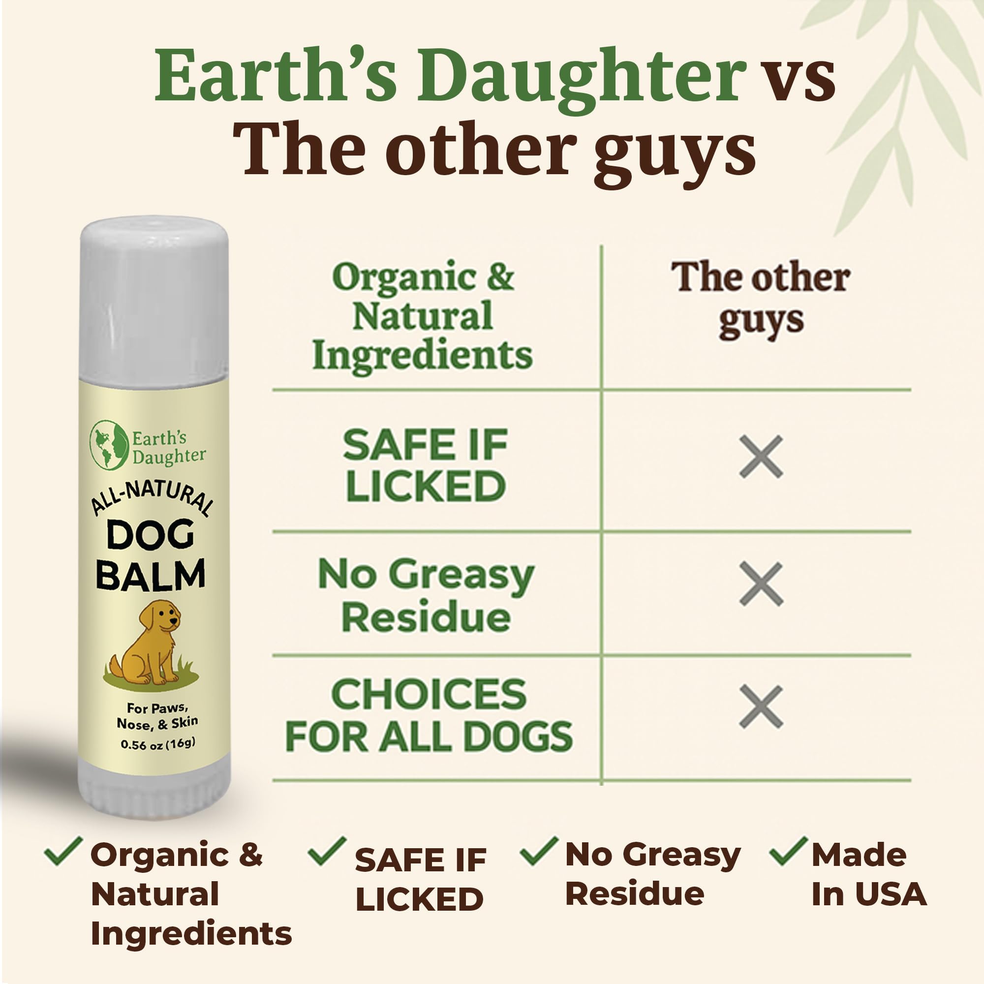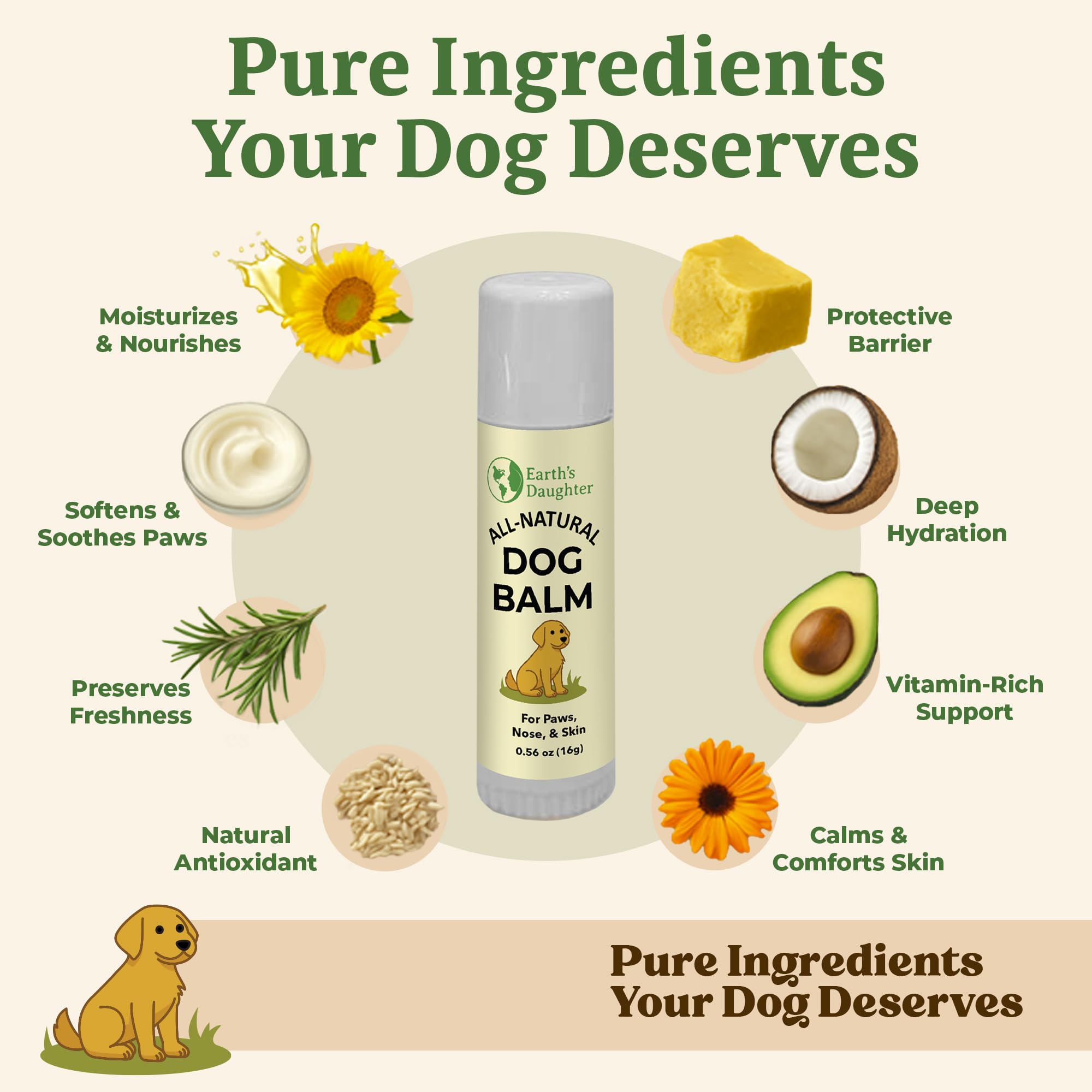 Earth’s Daughter – Pure & Honest Pet Care - Proudly made in the USA with lick-safe, natural ingredients, our balm contains no synthetic fragrances, parabens, or harsh chemicals—just clean comfort for your pup.