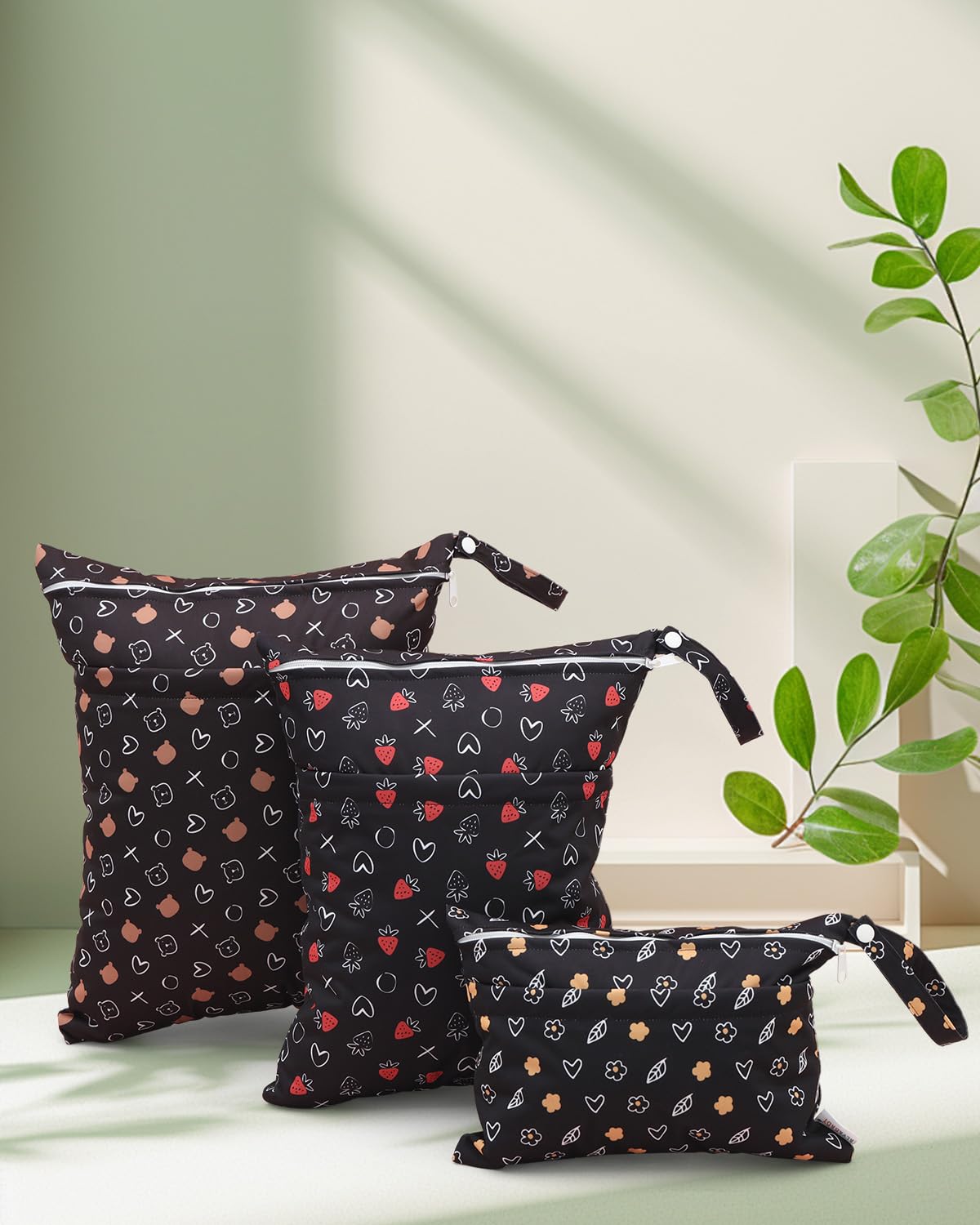 Enough Space-Large bag: L16''*W13.3'',can hold up to 10-12 diapers; Medium bag: L14.5''*W11.8'', holds up to 8 diapers; Small bag:L11.5''*W9'',can hold 3-4 diapers. Large and medium bag for baby diaper,swimming suits ,clothes, gym clothes and more. Small bag for your toiletries, bits and undergarment,cosmetics, socks and other belongings.