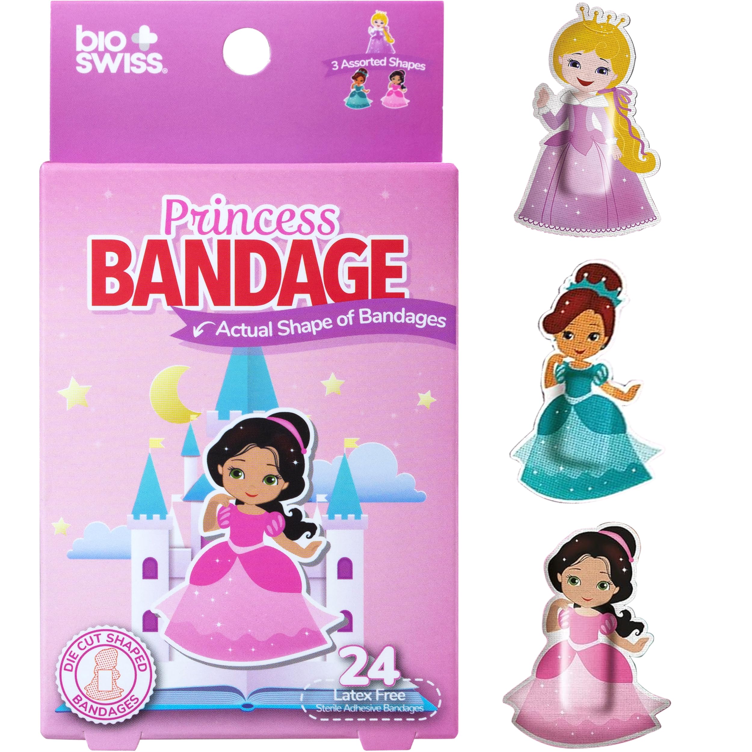 PRINCESS BANDAGES: This 24 piece pack of funny princess bandages is great for putting a smile on kids' faces while protecting wounds such as cuts, scrapes, and burns, and come in 3 assorted styles; sticky bandages are perfect for kids and adults alike, and also for school nurses and pediatric doctors