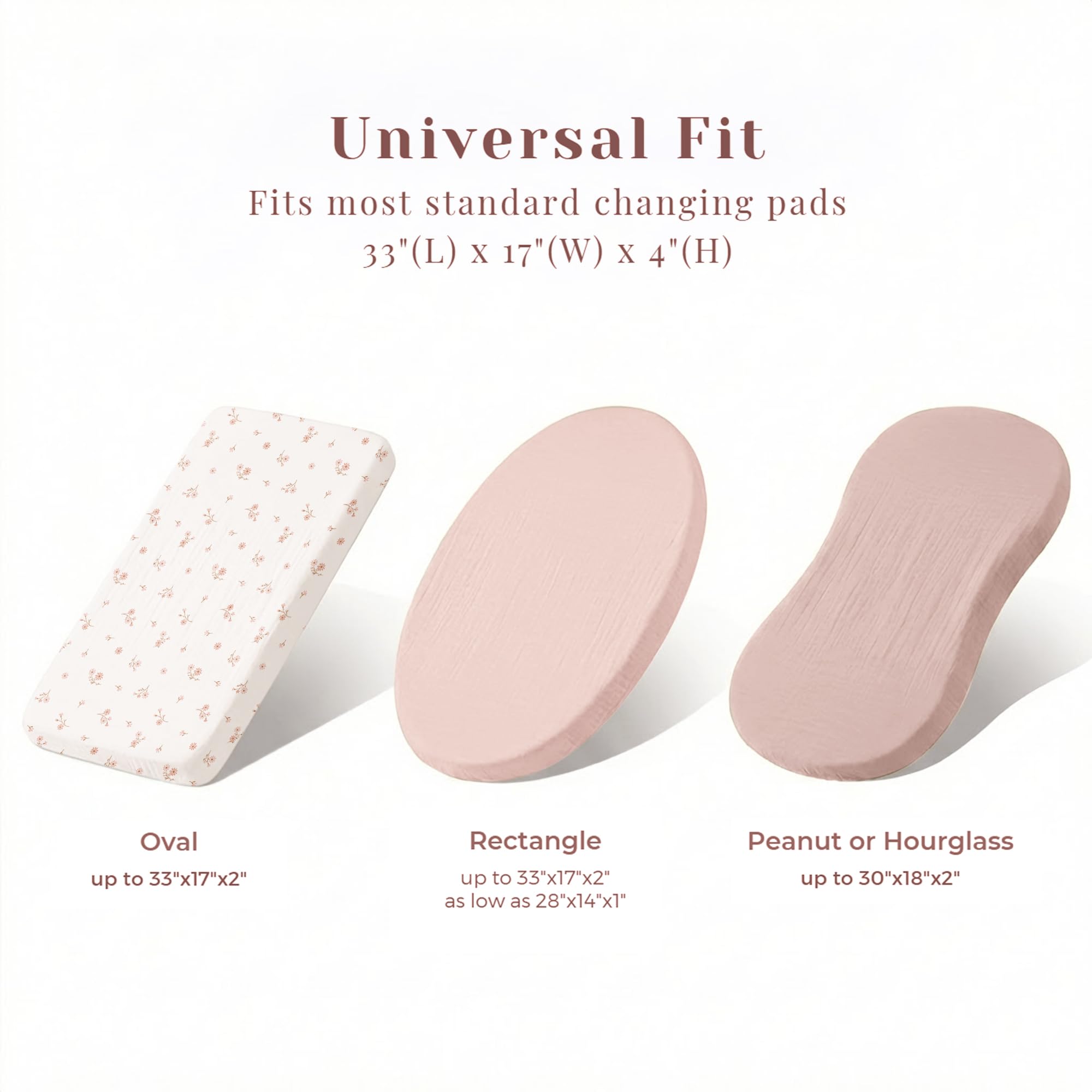 Fits Most Standard Changing Pads: This changing table pad cover fits most standard 32" x 16" changing pads. With an elastic band, it ensures a snug fit and works great on contoured pads, bassinet mattresses, and more