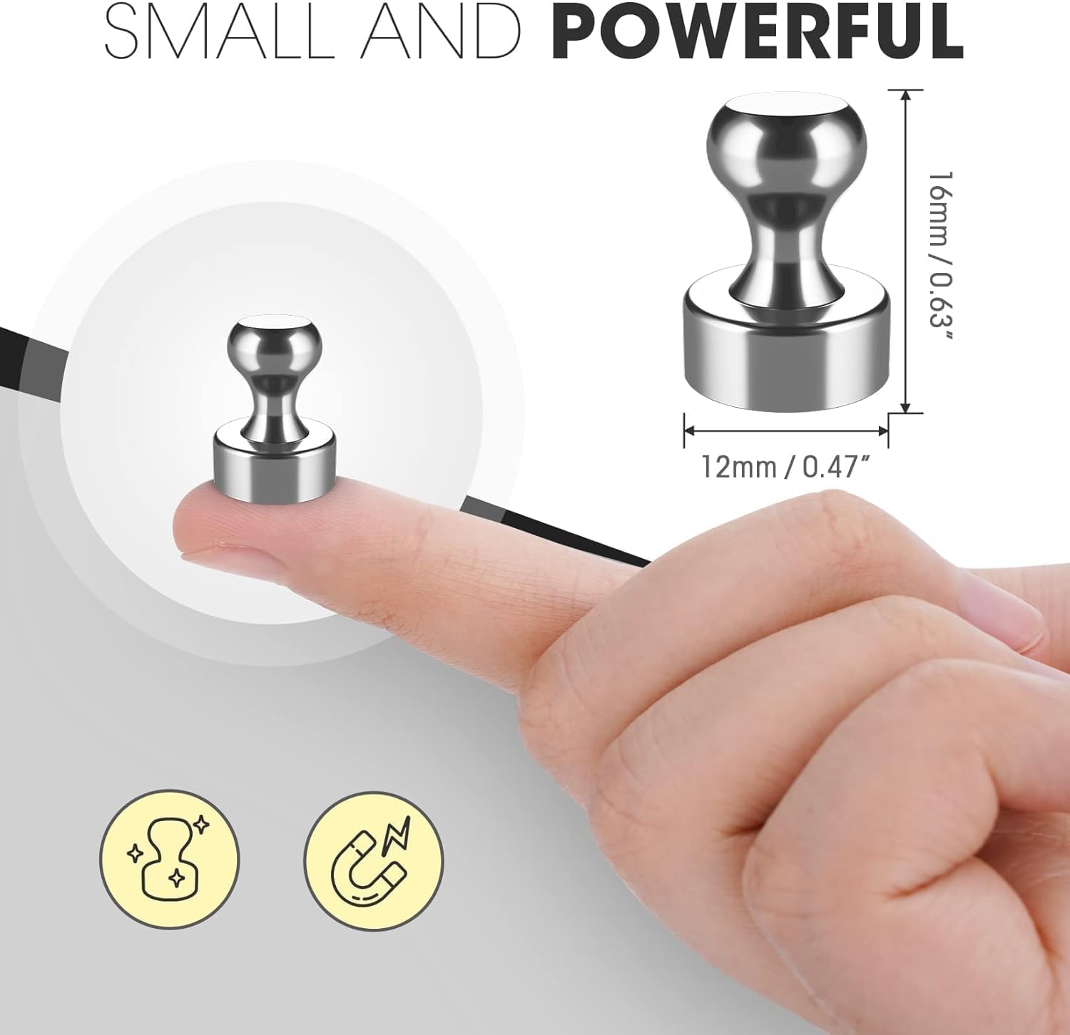 【Versatile and Powerfull】These magnetic push pins are highly versatile and offer strong adhesion, securely holding up to 12 sheets of paper or other lightweight items on magnetic surfaces.