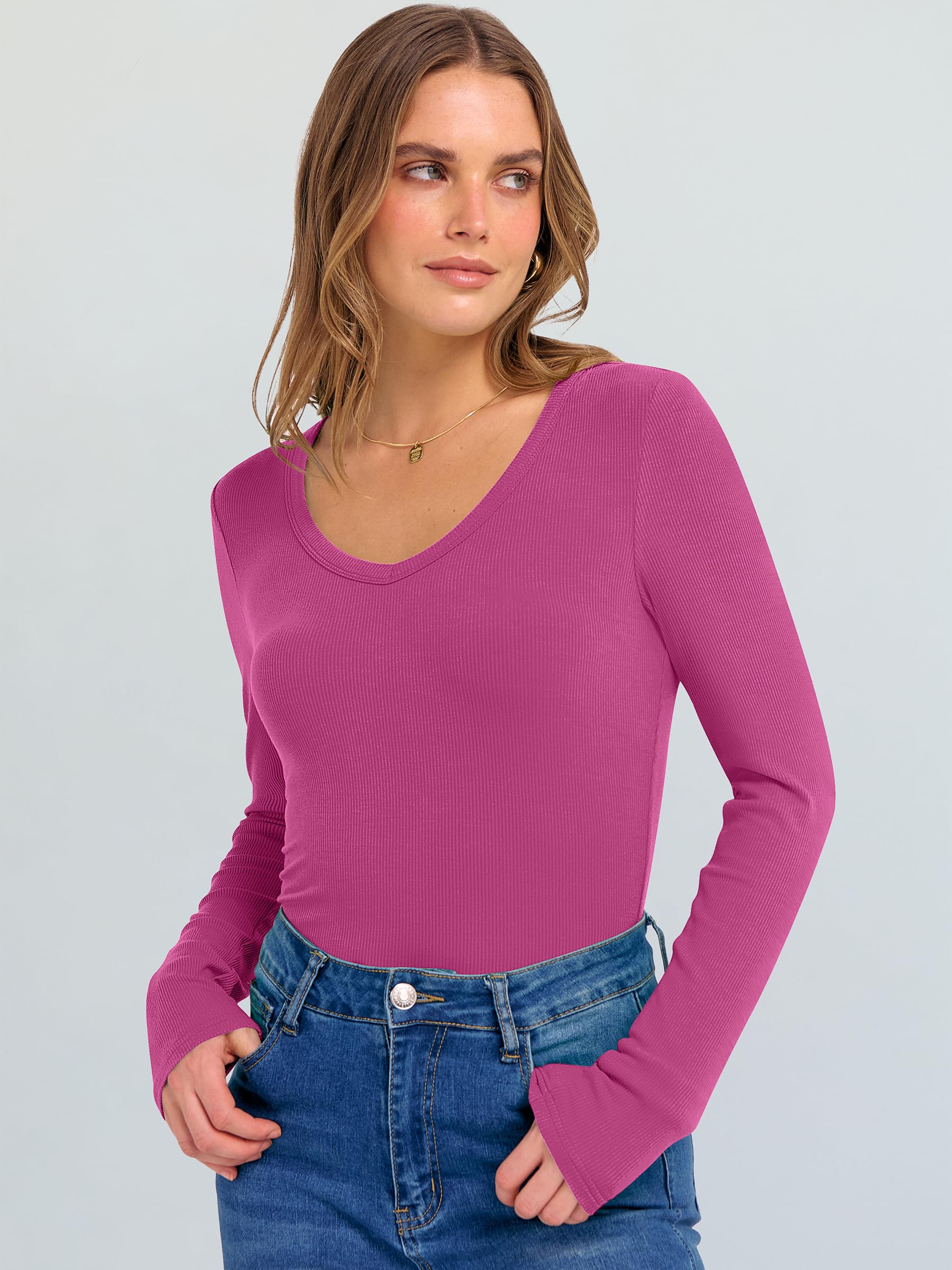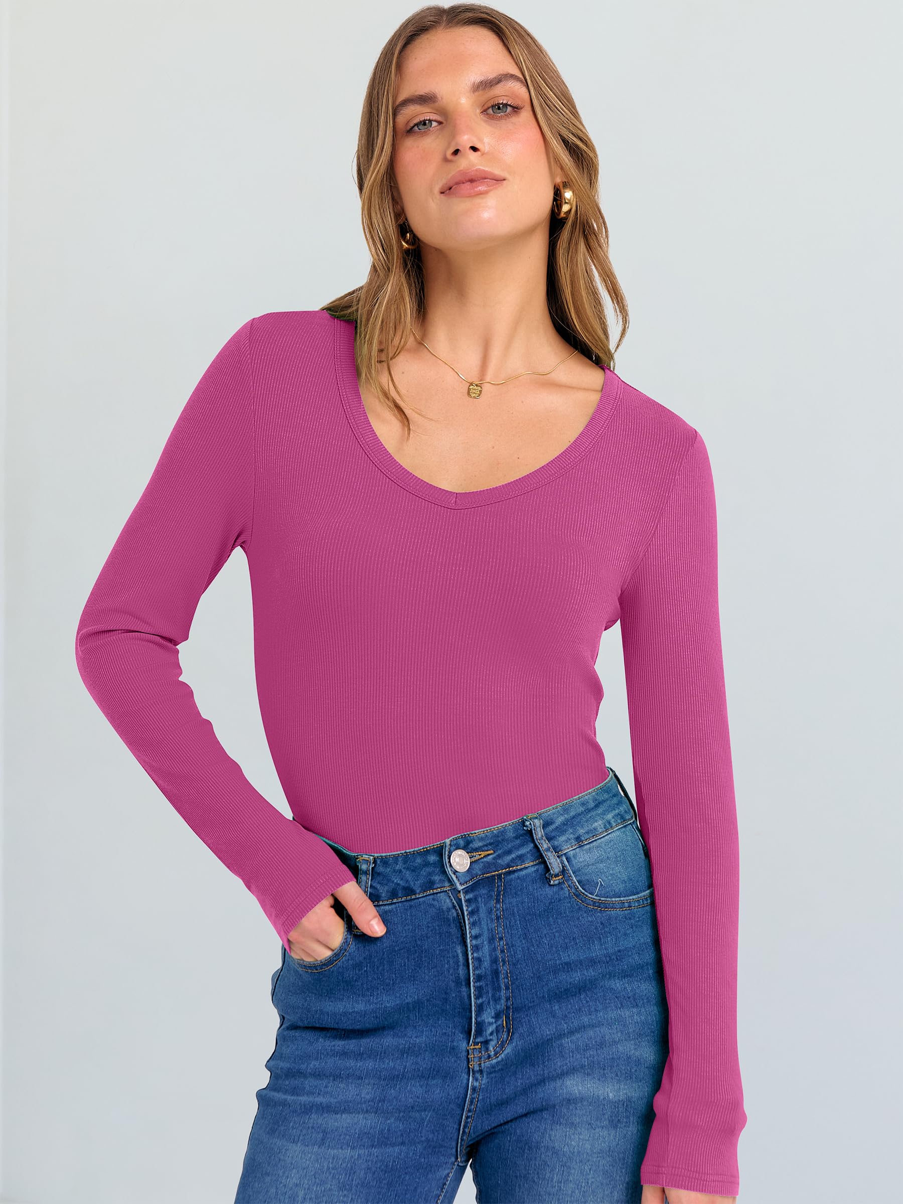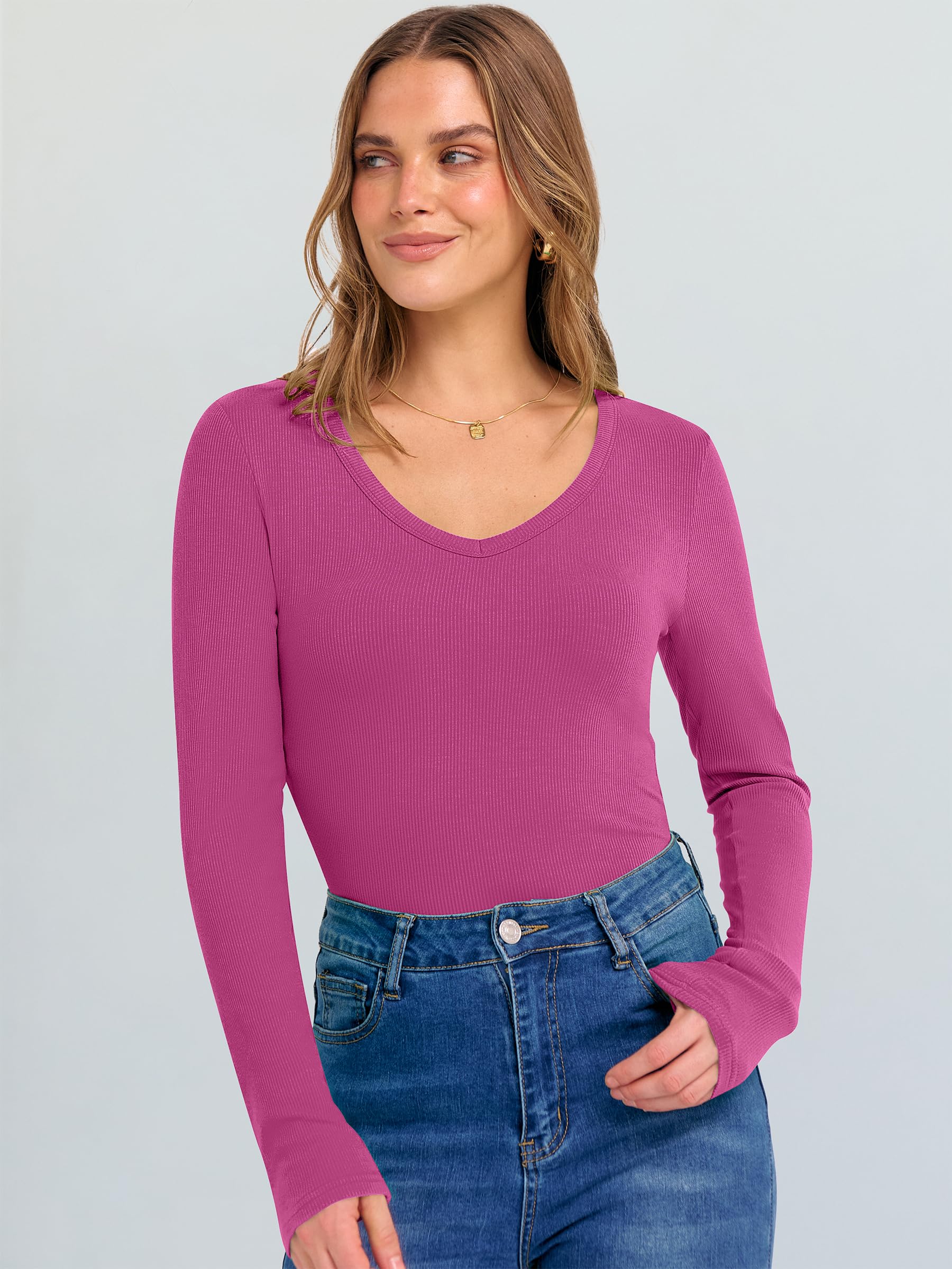 Features - Women's fall Y2k basic v neck knit tops, ribbed knit, long sleeves, and slim fit design.This women's shirts is perfect for daily wear, home, work, street wear, vacation, shopping, cafes and other casual occasions.