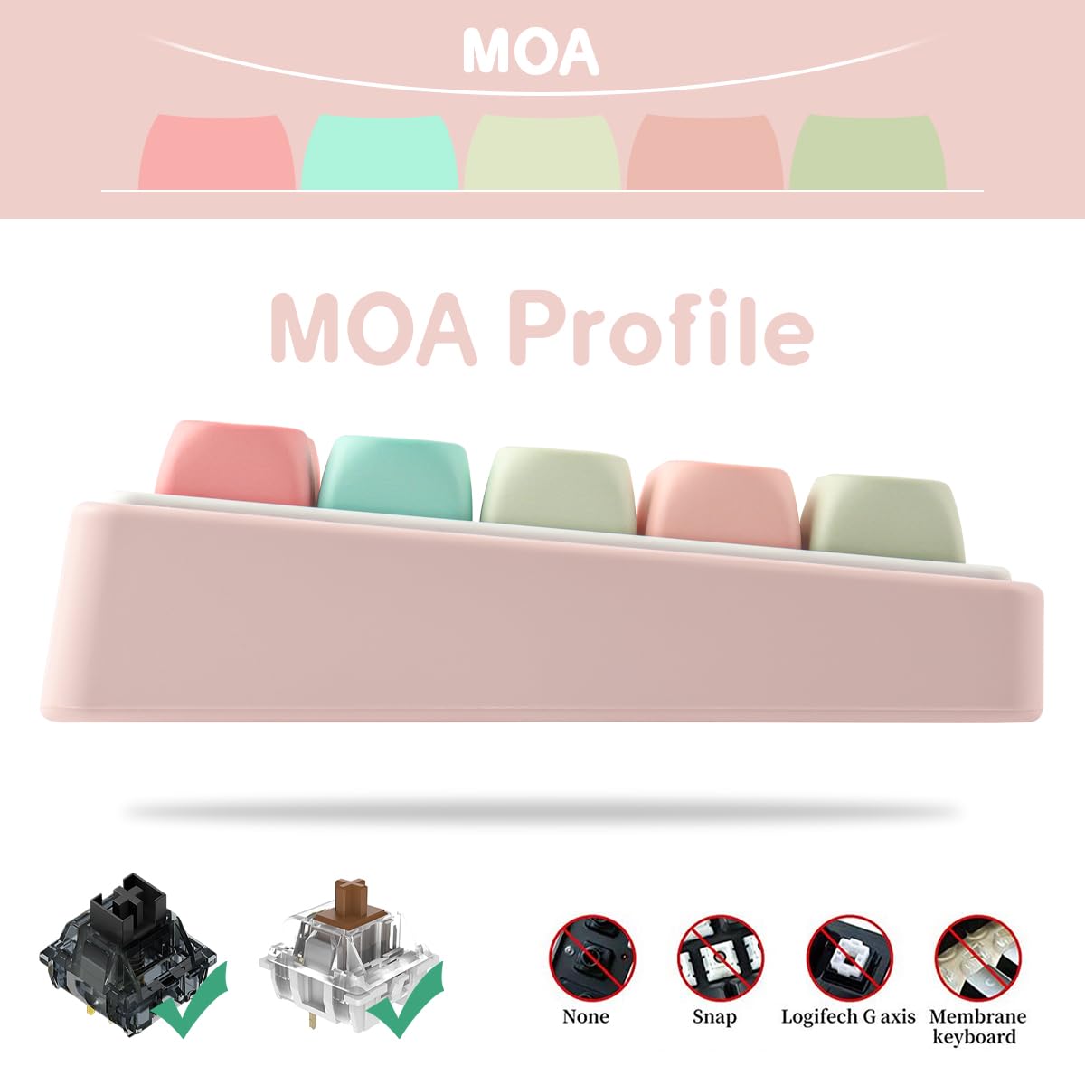 【MOA Keycaps】MOA Profile keycaps are a kind of high performance mechanical keyboard keycaps, the edge line is more rounded and curved sense is stronger, its unique design make it has higher stability and feel