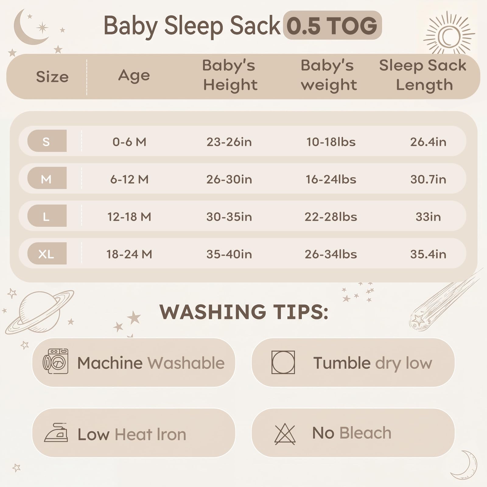 ACCOMPANY BABY'S GROWTH-Four size options available for your choice, S(0-6 months/10-18 pounds), M(6-12 months/16-24 pounds), L(12-18 months/22-28 pounds), XL(18-24 months/26-34 pounds). Unnivoll sleep sack is essential for everyday use, keep your baby cozy and sleeping peacefully!