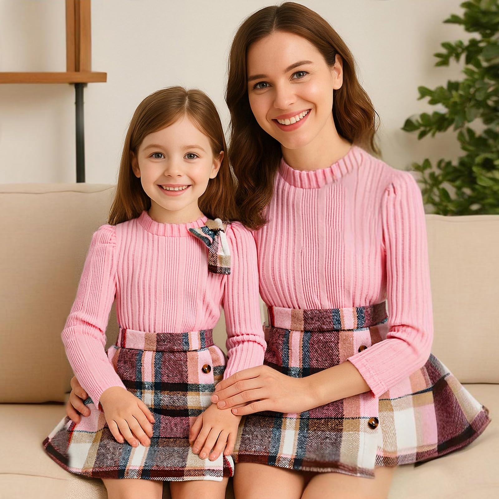 Package included: 1 x Long Sleeve Sweatshirt Tops +1 x Plaid Mini Skirt.