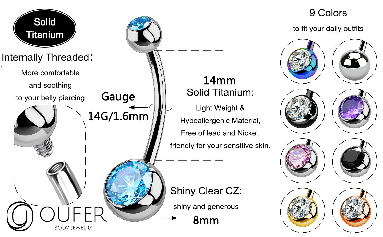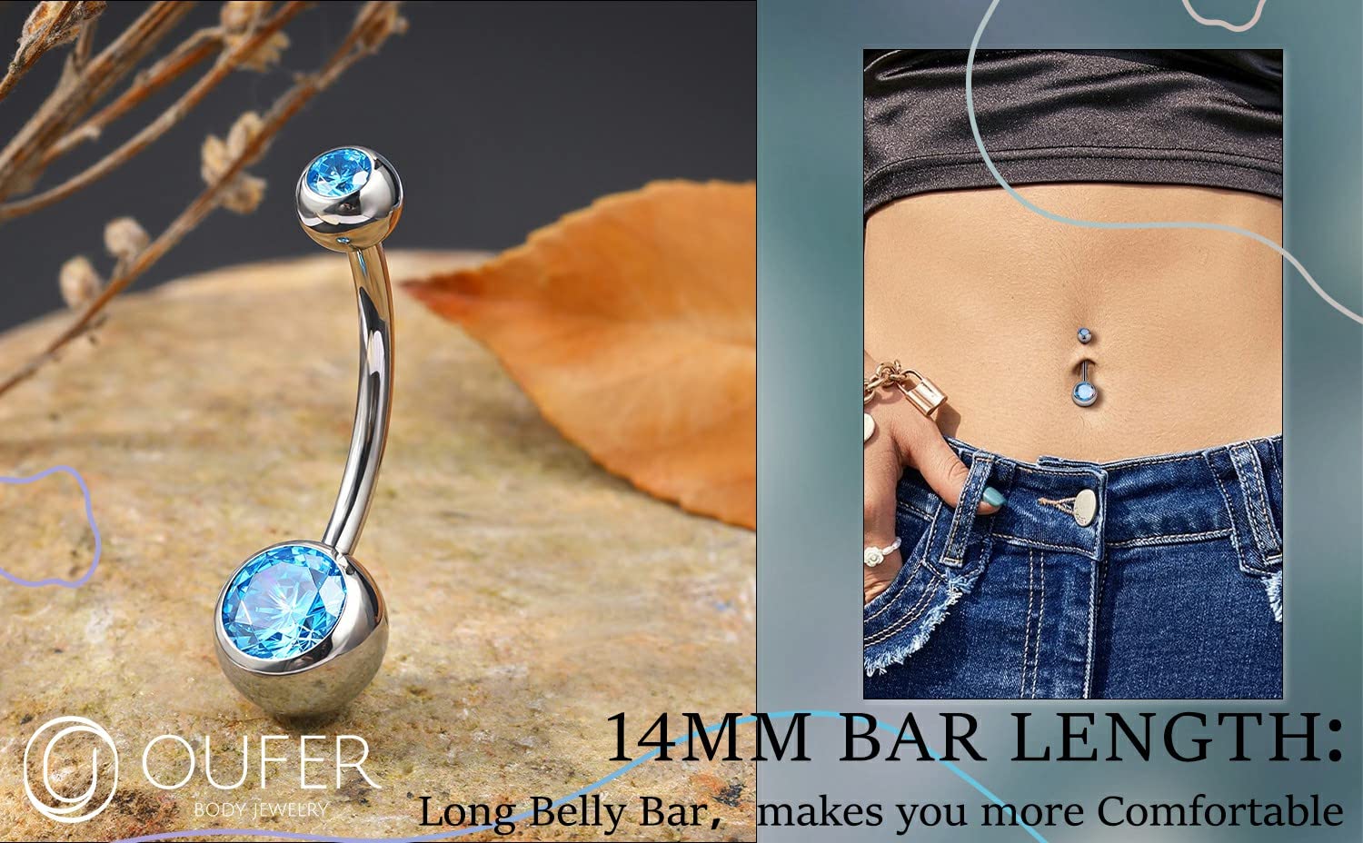 ❤NO irritations❤: G23 Titanium Belly Piercing Jewelry, Hypoallergenic, Nickel & Lead-Free, Can Be Worn Even on New Piercings, Good for the Sensitive Skin, Long Use Time