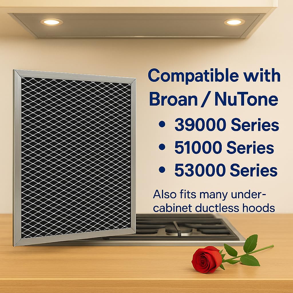 【Broan & NuTone Compatible】 – Designed to fit Broan 97007696, 39000, 51000, 53000, and other common ductless range hood models. Exact dimensions: 8.75" x 10.5" x 3/8"