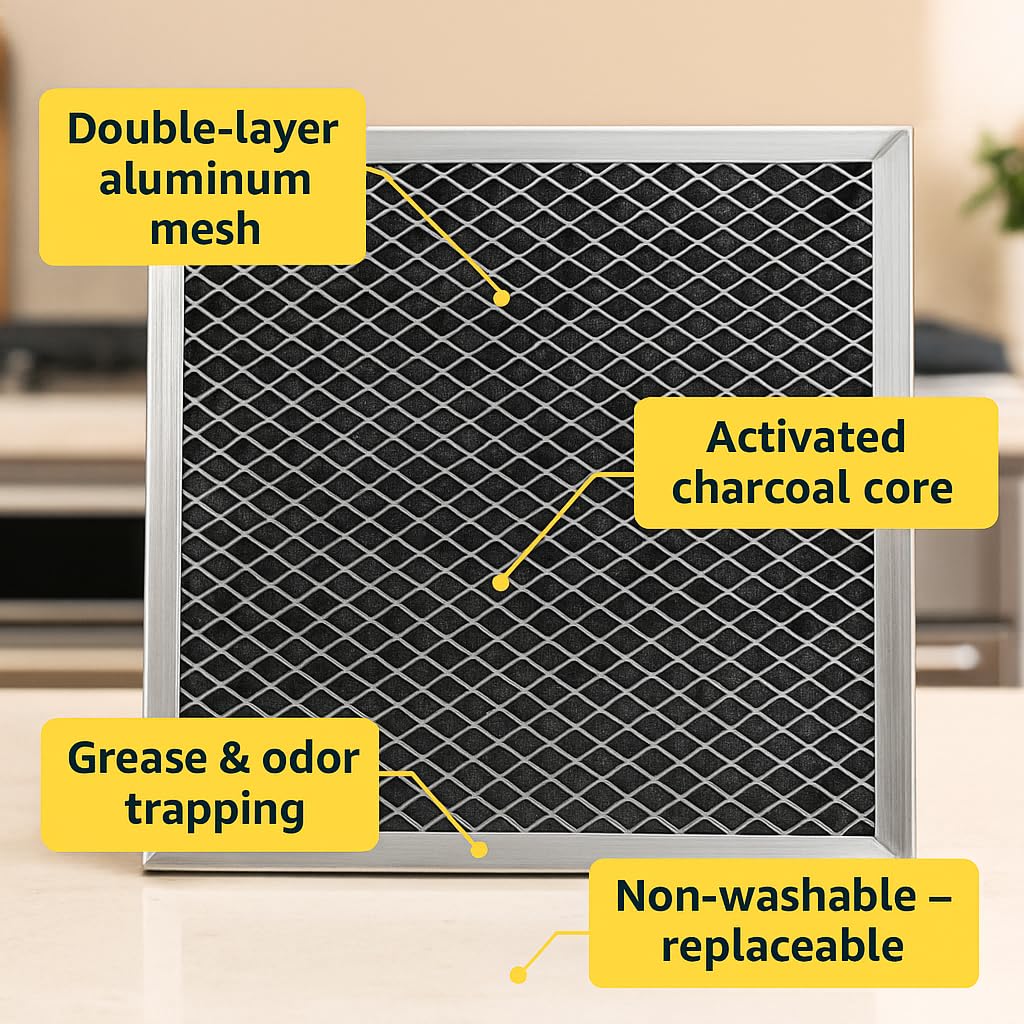 【Durable & Effective】 – Built from high-quality materials to provide long-lasting odor absorption and grease trapping. Ideal for daily kitchen use in stove hood vents.