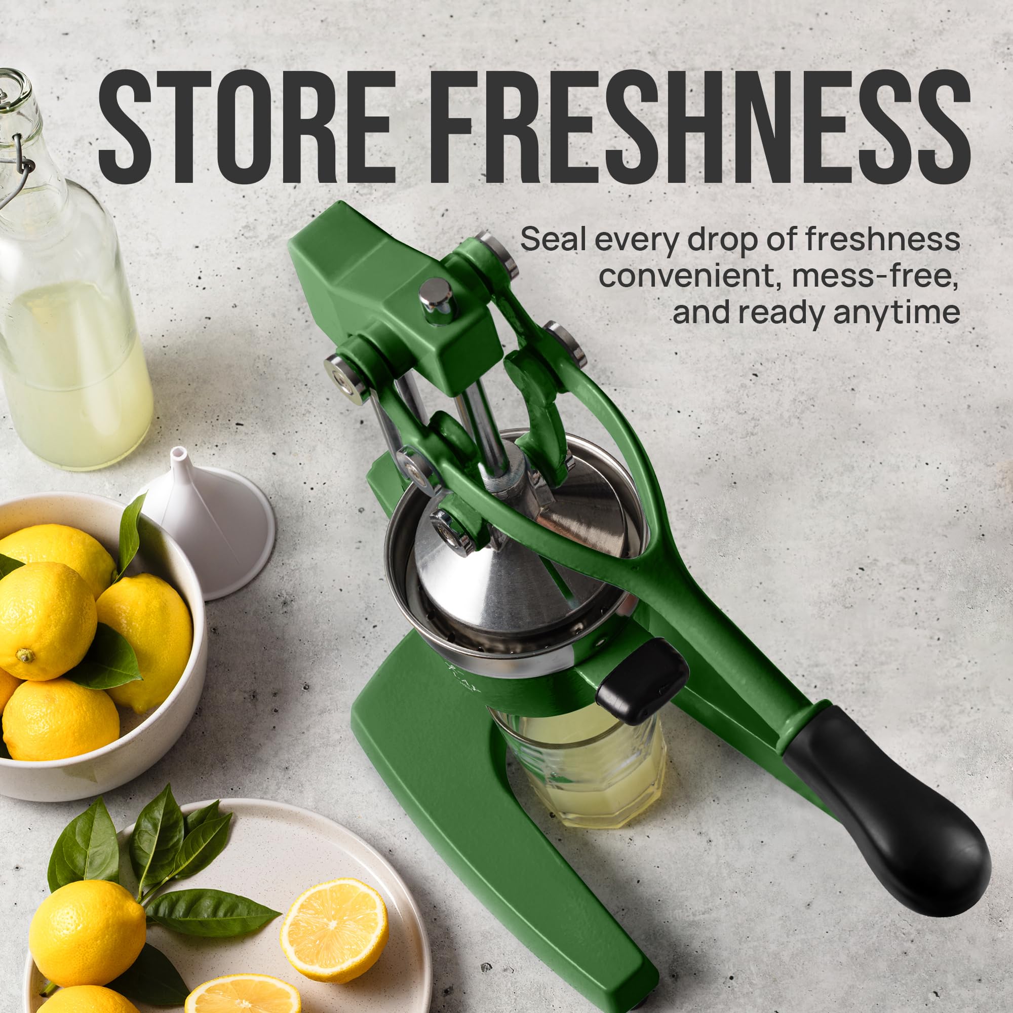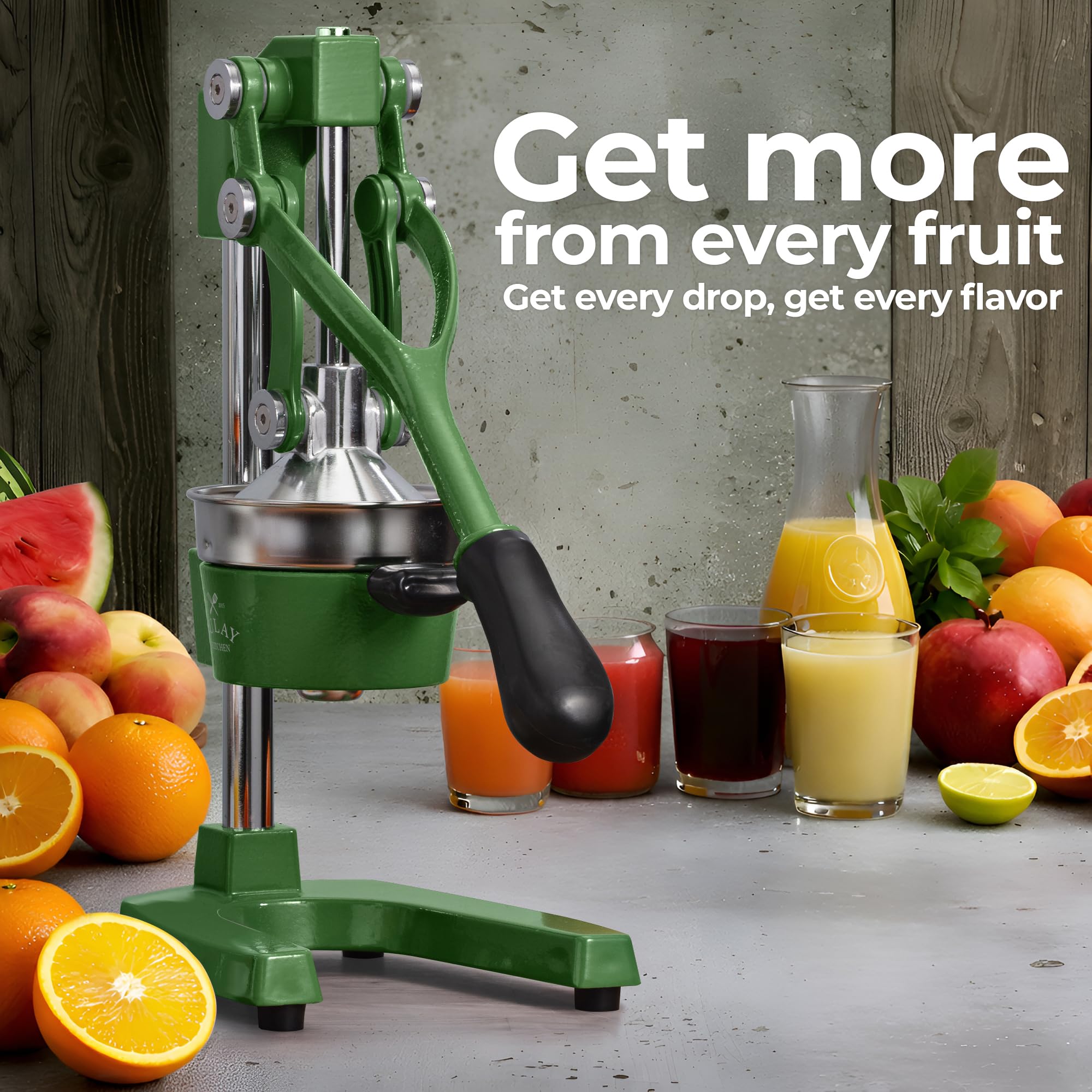 SAVE TIME & EFFORT: One press. Full juice. The cast iron lever arm delivers serious mechanical advantage, powering through thick-skinned citrus with minimal effort and maximum yield — in seconds. No electricity, no batteries, no fuss. Just the fastest path from fruit to glass.