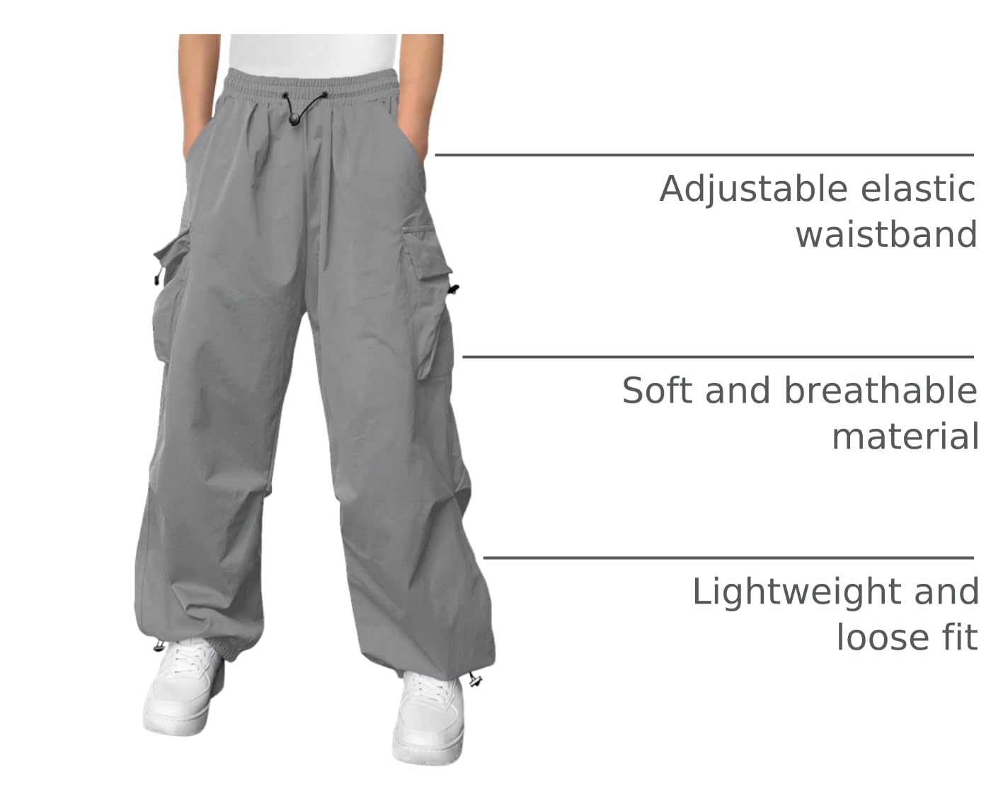 Simple but Versatile: Offering a perfect blend of form and function, these trendy cargo pants make a thoughtful present for any fashion-conscious boy. Kids fashion going out outfits, parshoot pants streetwear, travel pants, dance pants, hip hop joggers, cargo sweatpants for boy, Harajuku pants, cinch bottom, wide leg straight fit, vintage relaxed loose 90s-style parachute pants, summer-to-fall wardrobe transition
