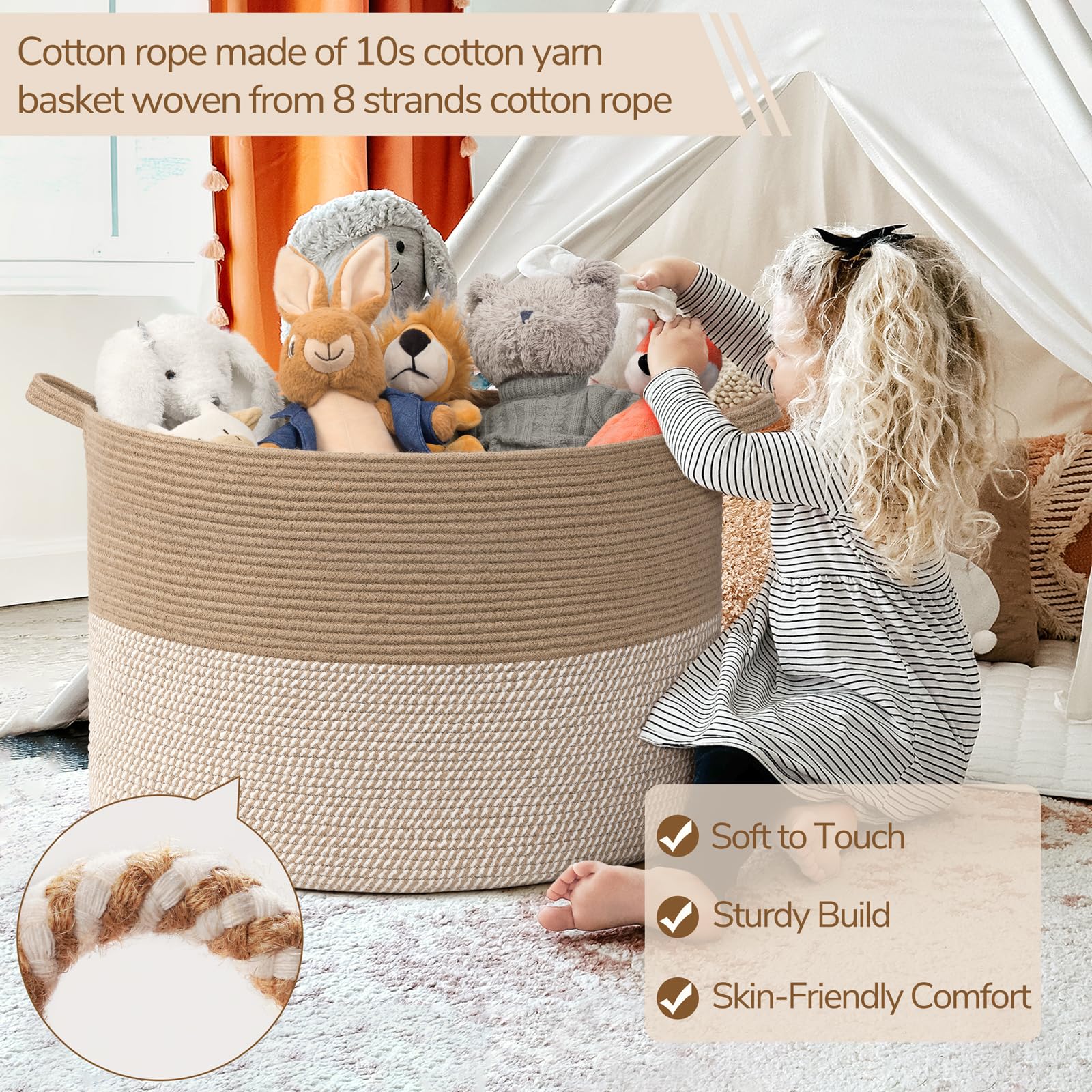 Family-Friendly Material. Soft cotton rope is gentle on the skin, odorless, and moisture-resistant, making it safe and comfortable for families with children.