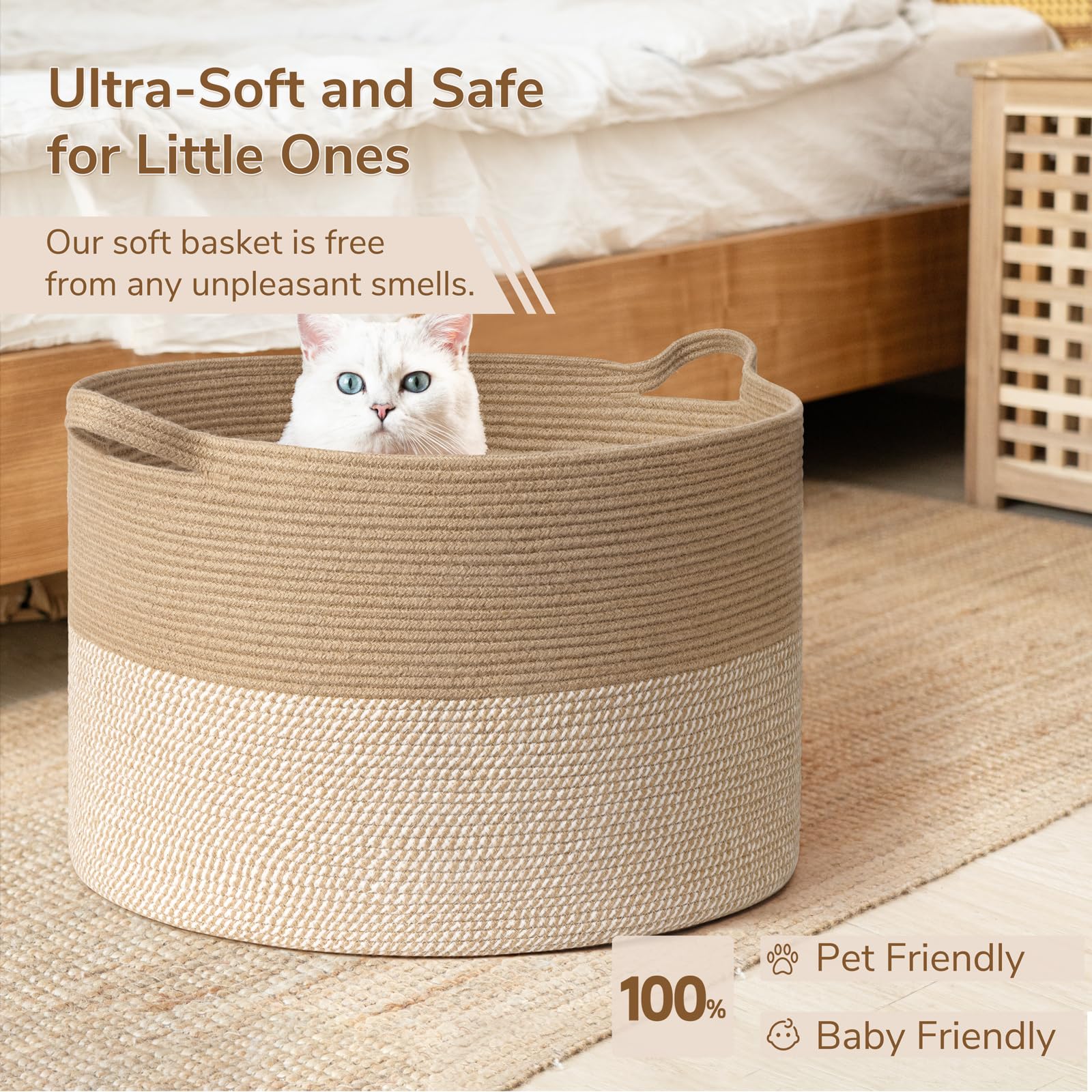 High-Quality Craftsmanship. Made from soft, durable cotton rope, this basket for shoes is slow-woven for even texture and reinforced to prevent sagging, ensuring long-lasting use.