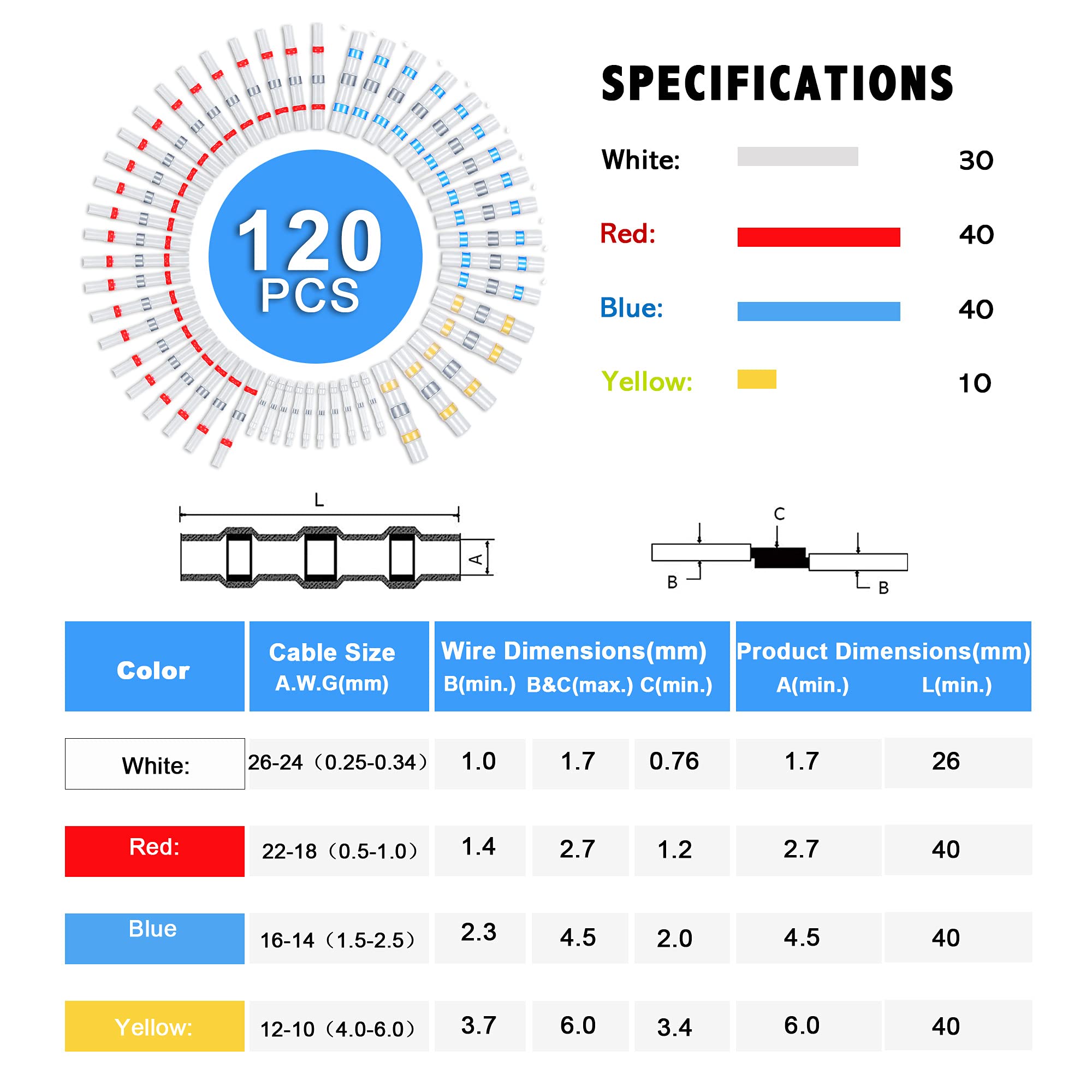 Waterproof and Seal Performance: There is two hot melt waterproof adhesive rings in each butt connector, which help it hold up better to moisture