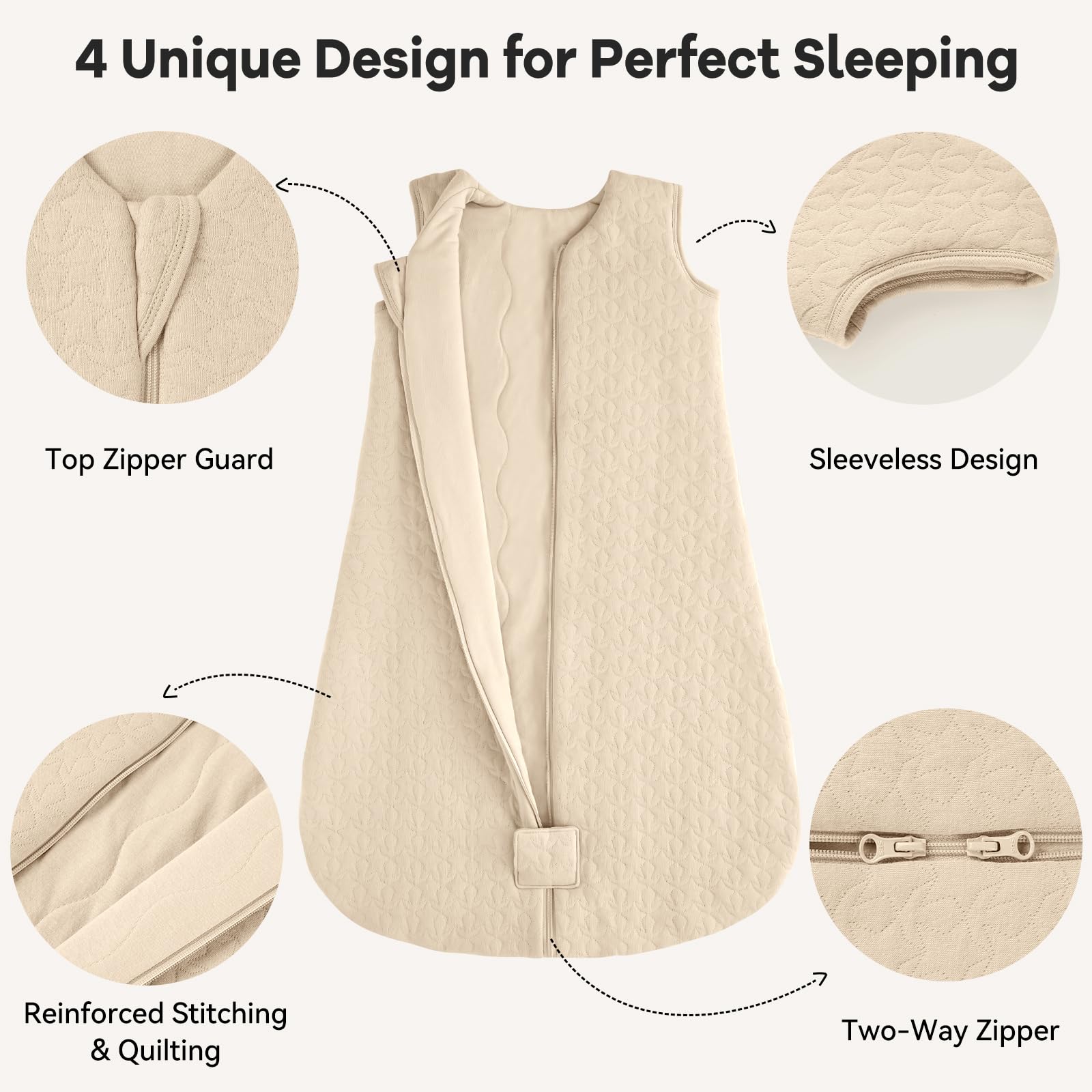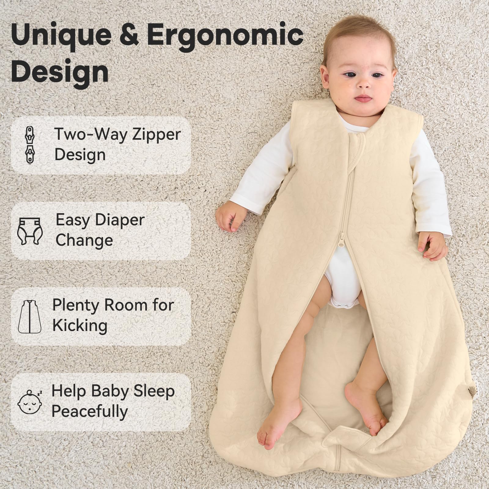 Quilted Design for Durability: Unique quilted stitching ensures even distribution of fillers, sleep sack will not lump or shift. With preshrinking process, our sleeping bag has a shrinkage rate of less than 2% after being washed by machine and low-temperature drying(below 30℃/86℉), making this newborn sleep sack more durable and practical for daily use.