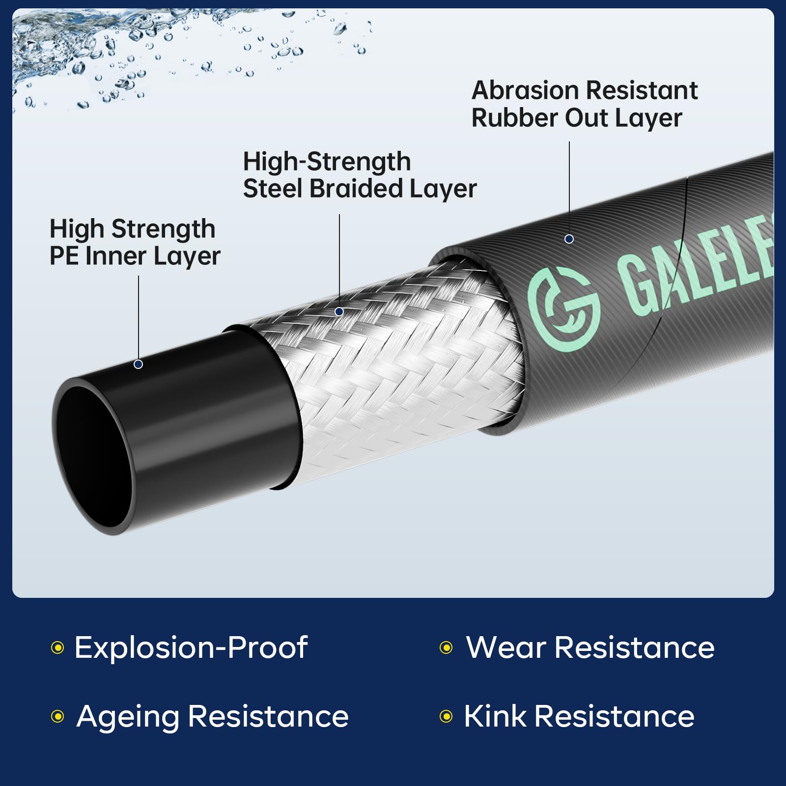 Super Flexible: Crafted from high-grade, robust, and abrasion-resistant material, pressure washer hose is kink-resistant and remarkably pliant. Inner tube is reinforced with synthetic rubber. It is lightweight, simple to maneuver, and designed to resist kinks and markings.