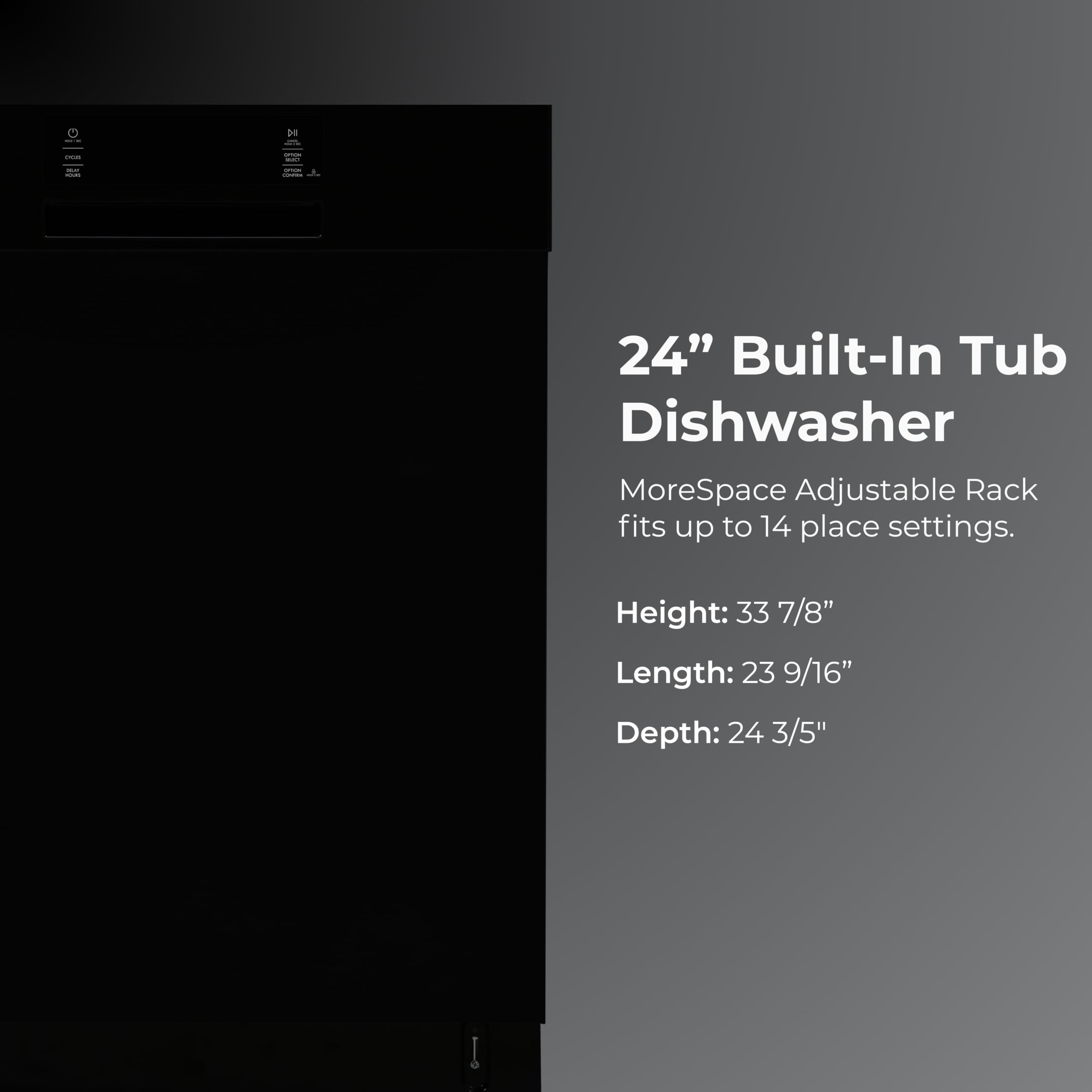 Get the cleaning power your dishes need with the Kenmore Built-In Dishwasher. This 24" dishwasher makes it easy to get the right wash for your load every time with the SmartWash Cycle, which detects the amount of soil in the water and automatically adjusts the temperature, amount of water, and duration of the wash accordingly. Featuring the UltraWash system, this dishwasher uses two spray arms to clean from every angle while constantly filtering the wash water throughout the cycle. Paired with SmartDry technology, it uses hot water to promote the condensation of moisture in the tub for sparkling clean and dry dishes at the end of the cycle. The Extra Dry option boosts heat and drying time for plastics and other hard-to-dry items. To help prevent issues during a cycle, the Leak Detect System measures and monitors water flow at multiple points. If a problem is sensed, the dishwasher will automatically drain the tub and alert you when necessary. The 3-stage UltraWash Filter captures food particles as small as a grain of sand and removes them from the cycle, preventing debris from landing back on your dishes. Functional and flexible, this dishwasher includes Delay Start, so you can run a cycle 1 to 24 hours later—perfect for off-peak hours or when you’re not home. The Express Cycle gets a full load clean in just 50 minutes, helping you save time when you need dishes fast. With space for up to 14 place settings, a stainless steel tub that resists food stains and retains heat, and Energy Star certification to help you save water and energy each cycle, this dishwasher is a smart, stylish addition to any kitchen.