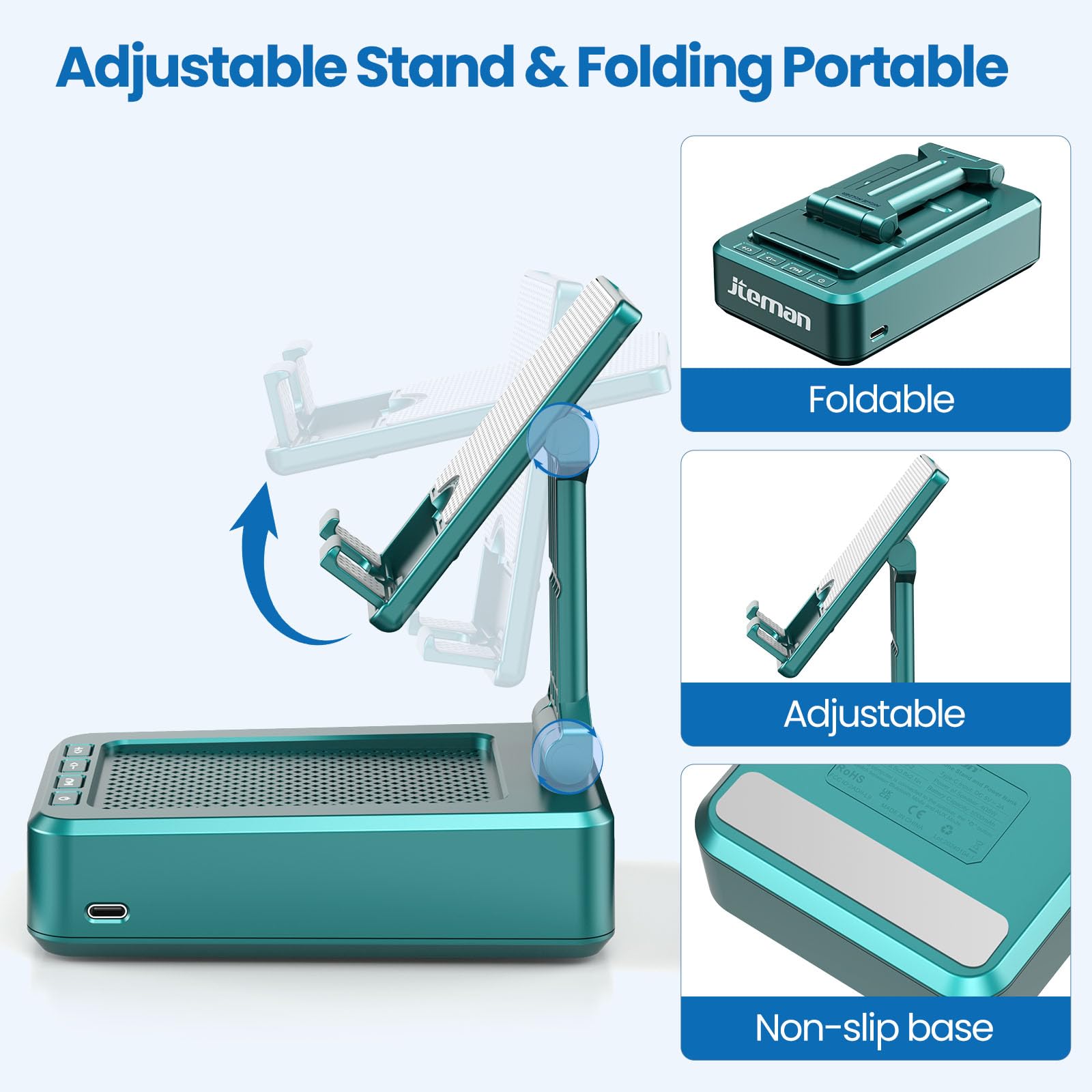 2-in-1 Bluetooth Speaker & Phone Stand: The Jteman combines a hands-free phone holder with a powerful Bluetooth speaker. Free your hands while enjoying louder, clearer sound for music, videos, and calls. The enhanced speaker with built-in microphone helps make conversations and audio more intelligible for the elderly.This cool gadget makes a practical birthday gift for men and women.【Please NOTE: This device cannot charge cell phones.】