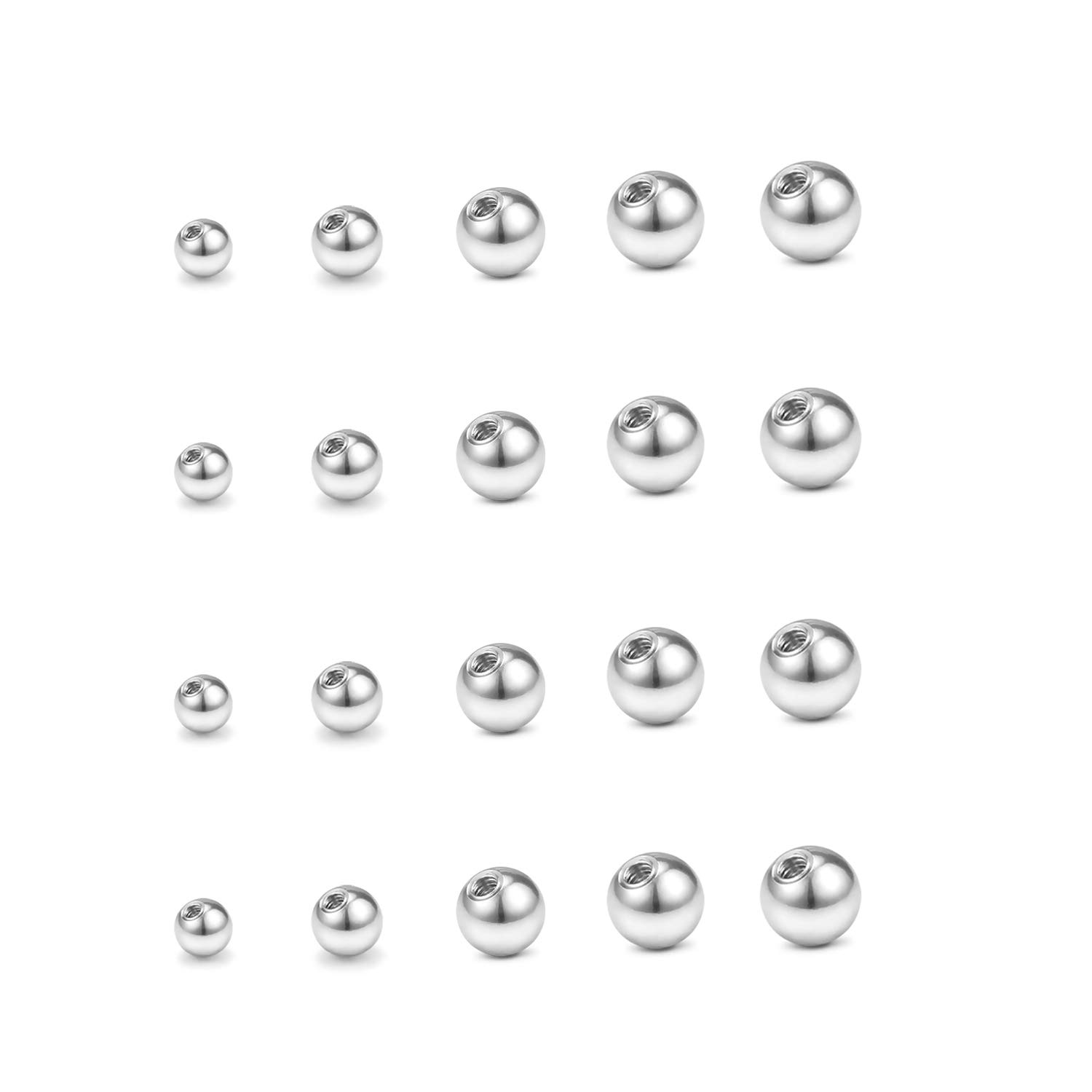 SIZE - Piercing hole size: only used for 18g(1.0mm) & 16g (1.2mm); Ball size: 1/8"(3mm), 5/32"(4mm), 13/64"(5mm), 1/4"( 6mm), 5/16"(8mm). Please confirm the gauge and ball size you need before purchase. Just used for 16 gauge piercing jewelry replacement balls; Please note these balls can not used for any 14 gauge piercing jewelry!!