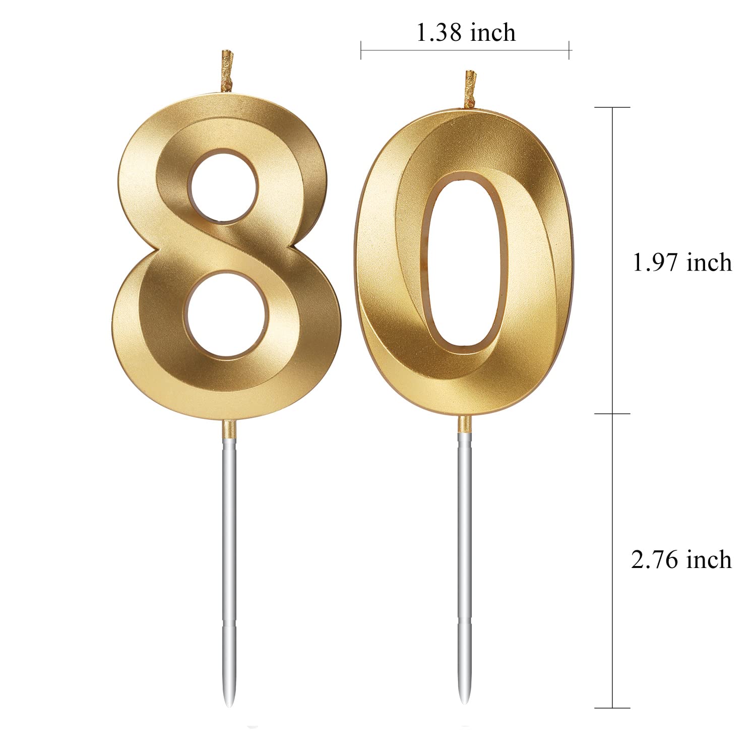 Each Candle Size - Candle Height: 1.97 inches/5cm. Total height: 4.9 inches/12.5cm. Width: 1.4 inches/3.5cm. Thickness: 0.4 inches/1cm.