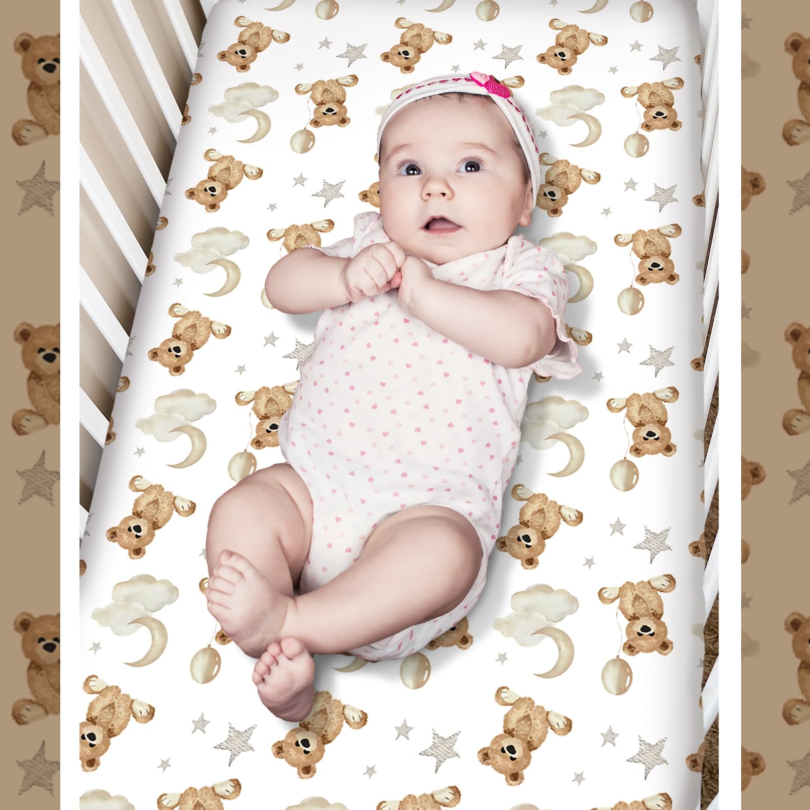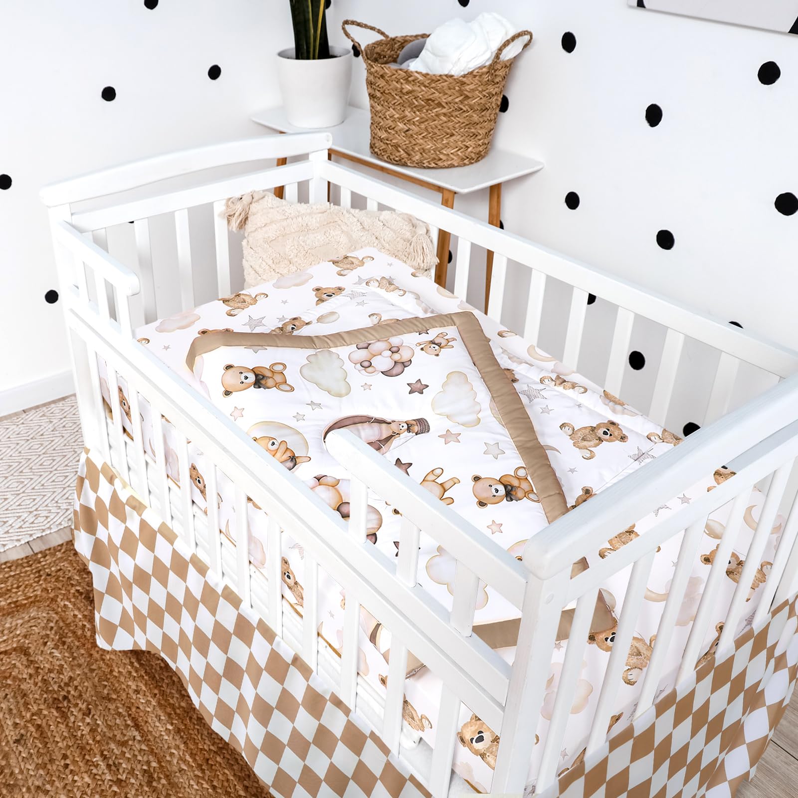 Wide Application: this teddy bear baby crib bedding set is suitable as a warm gift for expectant mothers or baby showers, can decorate the crib to create the neutral animal theme baby room or nursery, giving the baby a warm little space