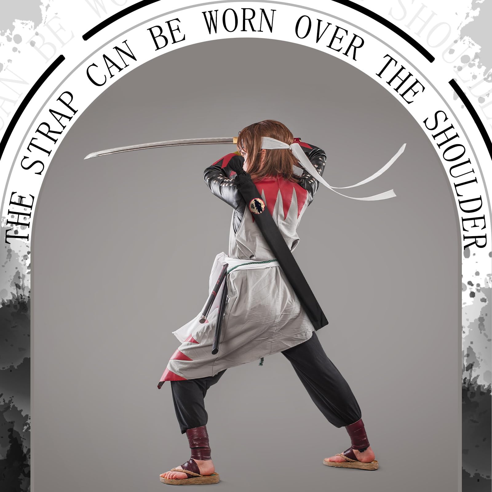 Adjustable Strap: the strap length is easy to adjust, allowing you to adjust in line with your height, body shape, so as to wear more comfortably; Also, the katana case is easy to use, just press the buckle gently, the two ends of the buckle automatically open, then you can hang the sword bag on your back or over shoulder and carry it to party, cosplay and other places
