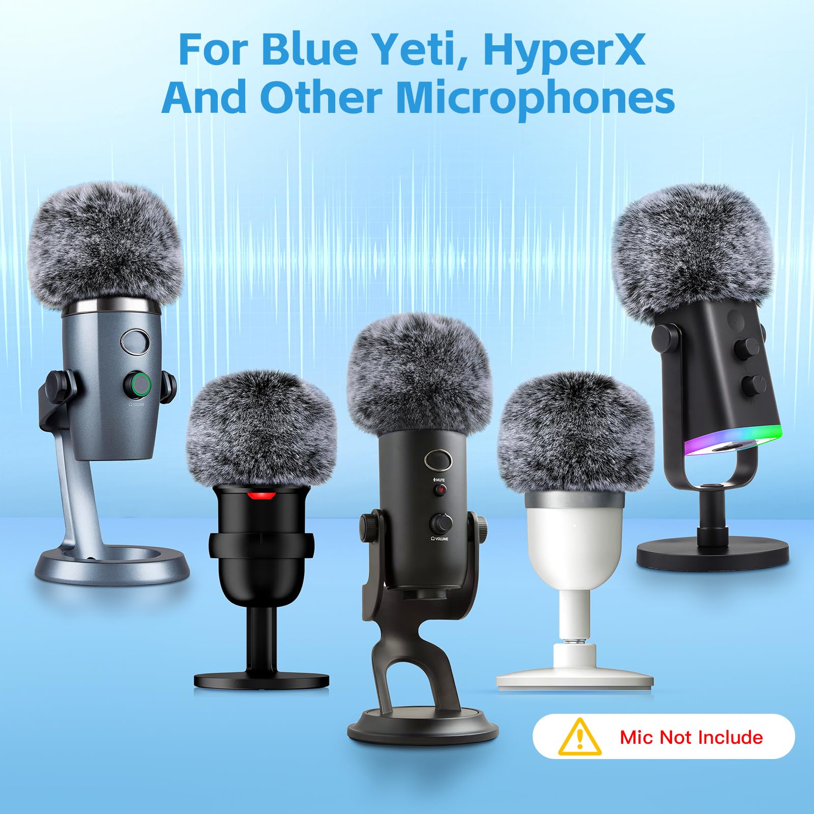 【Broad Compatibility】Our furry microphone foam cover is custom-made to seamlessly fit Blue Yeti, Blue Yeti Pro, Blue Yeti Nano, ZealSound K66, A8M, SoloCast, Razer Seiren Mini, Seiren V2 Pro, and other mic heads with precise dimensions of up to 2.48 inches in height and 2.36 inches in diameter, ensuring a perfect match with the Blue Yeti microphone head. Additionally, its effective elasticity allows it to stretch and conform snugly to various microphone shapes and sizes, ensuring a secure fit that remains in place during use.
