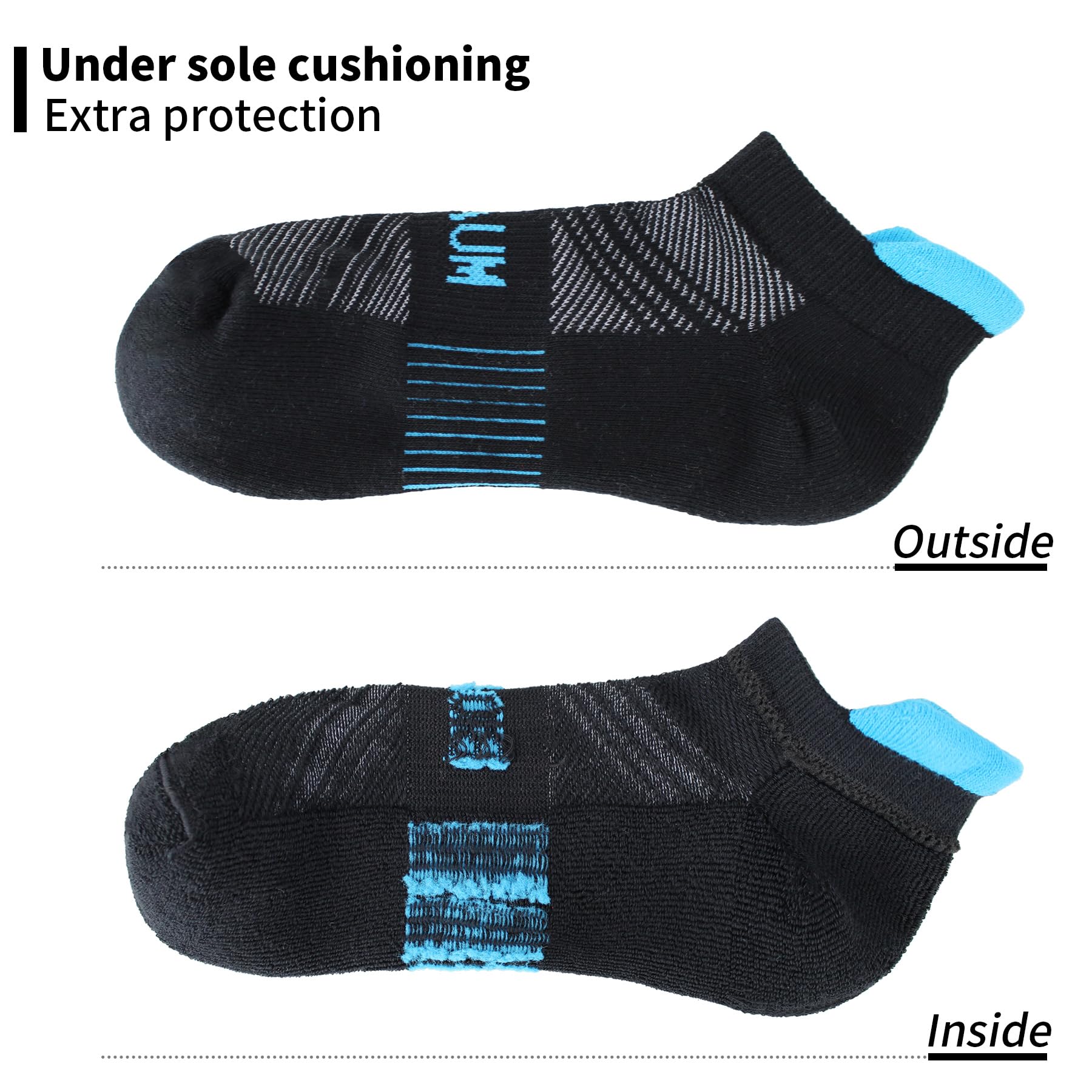 MAX CUSHIONING:Max Cushioning place in areas of high impact to reduce sock and foot pain during sports or daily activity,Comfortable to wear all day without irritating your feet skin. Arch support to improve foot arch fatigue and keep sock in place
