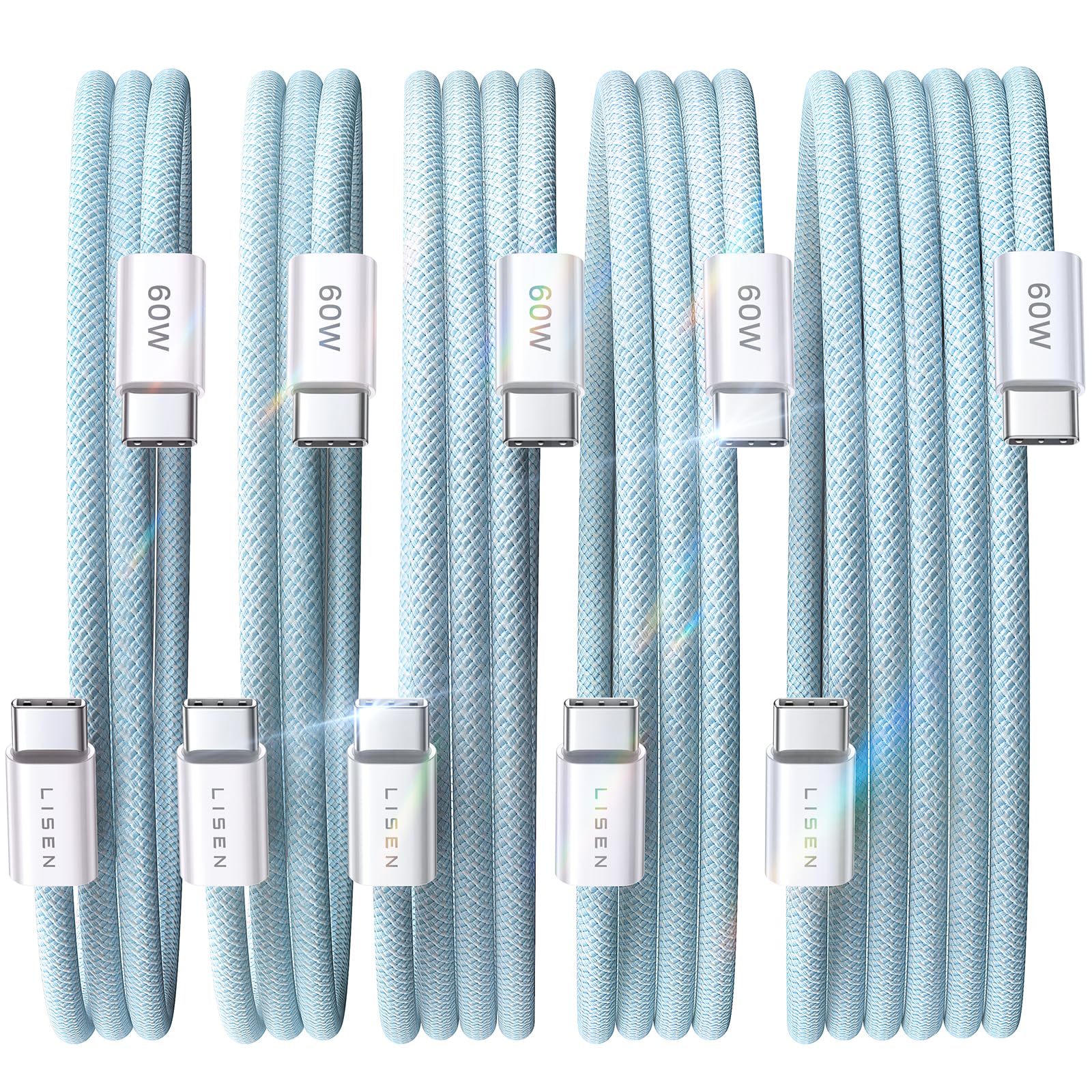 LISEN USB C to USB C Cable, 5-Pack [3.3/3.3/6.6/6.6/10FT] Blue