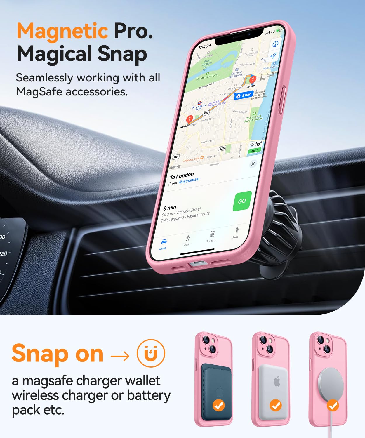 [Powerful Magnetic Attraction] With built-in powerful N52 magnets, this iPhone 13 Mini case is perfectly compatible with MagSafe chargers and other Qi wireless chargers. It also firmly connects to other magnetic accessories like magnetic wallets, power banks, and car mounts, ensuring a secure and stable connection even during rotation or movement.