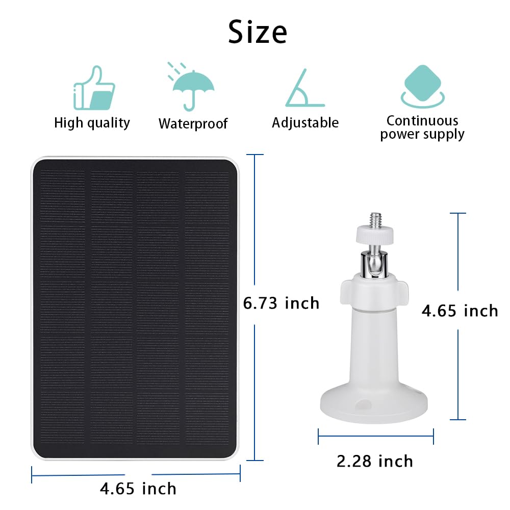Continuous Power Supply: Solar panel for security camera is a monocrystalline silicon solar panel with an output power of 4W. Solar panel can provide continuous solar power to your battery camera during the day, and the camera can also work normally at night with the charged battery