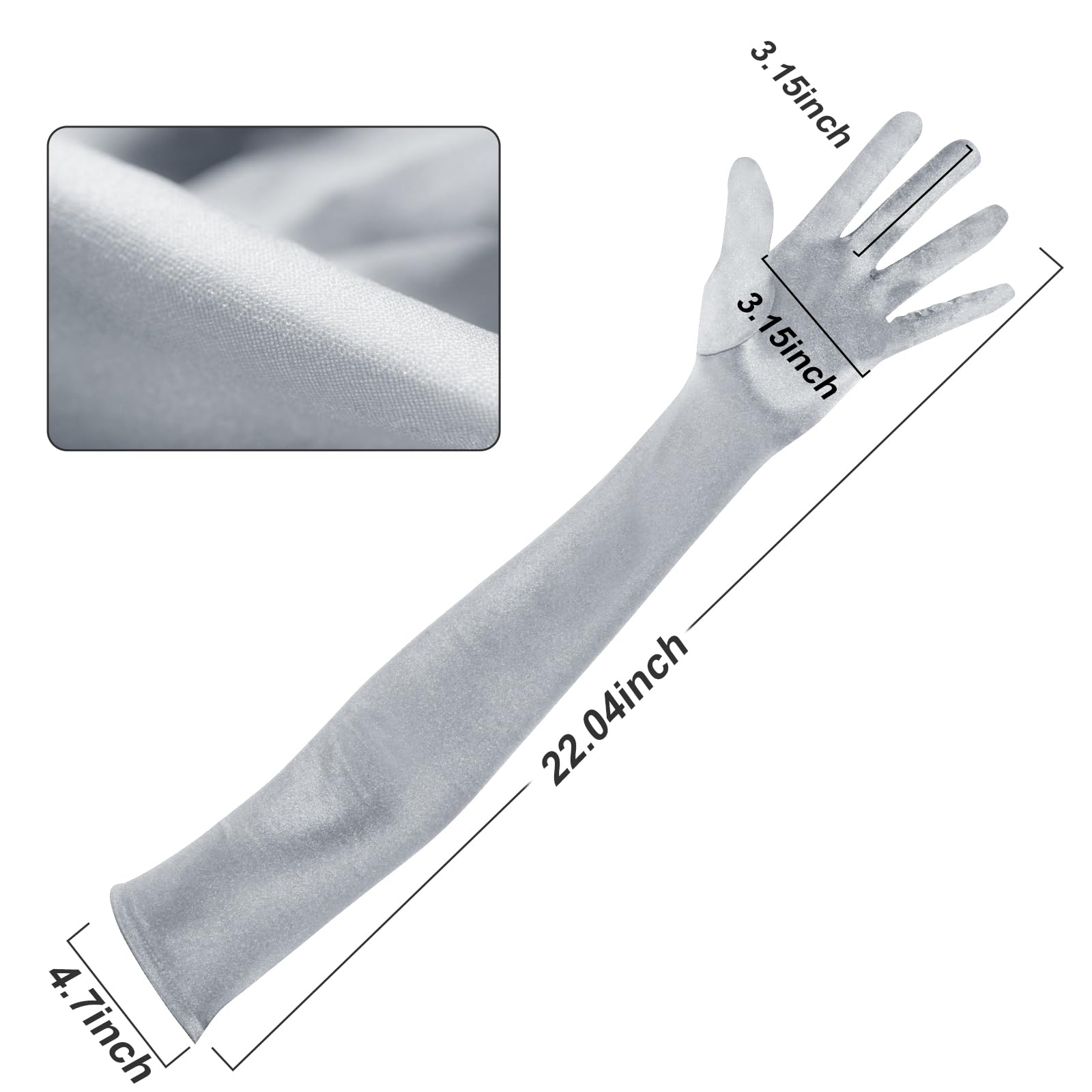 Dimension - The length of these opera gloves are approximately 21.6 inches from the fingertip to the end of the glove. The end width is 4.7 inches when laying flat, suitable for most adults.