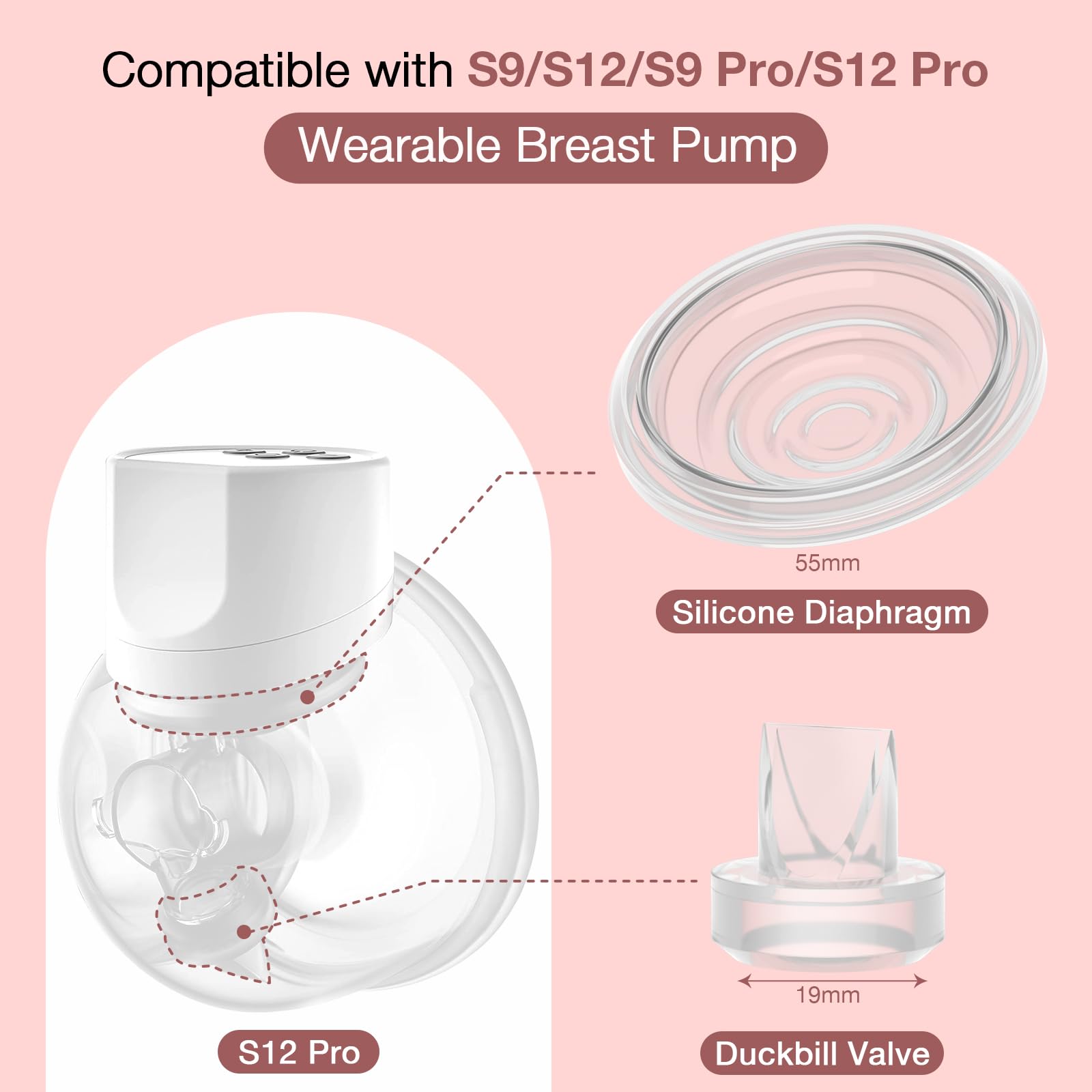 ✅Compatible with S9 / S12 / S9Pro / S12Pro: This wearable breast pump duckbill valve and diaphragm kit can perfectly meet the accessories you need when using S9 / S12 / S9Pro / S12Pro electric breast pump. The diaphragm is used to help the breast pump maintain the seal to prevent milk leakage. Silicone Duckbill valve can be used to drain milk to the bottom of the containeris and prevent back-flow of breast milk.