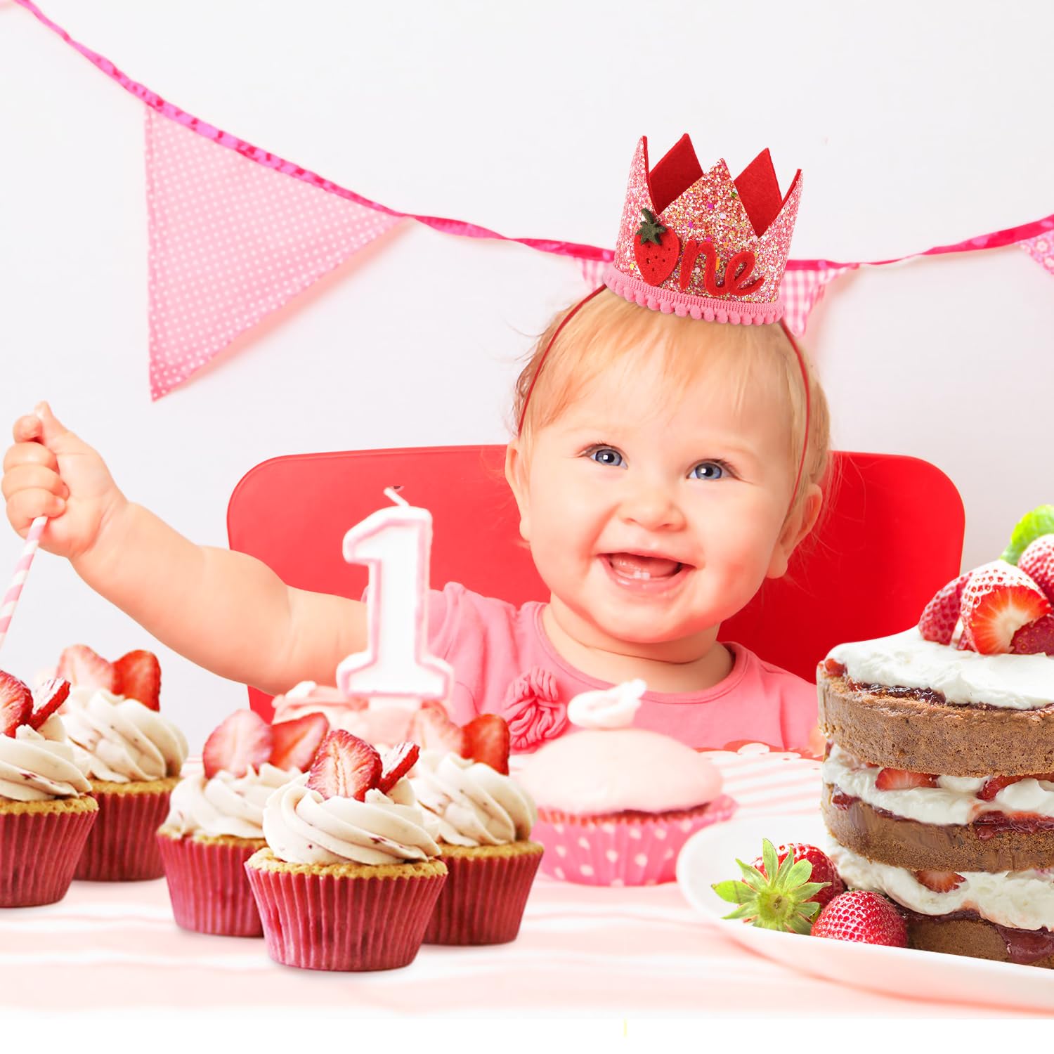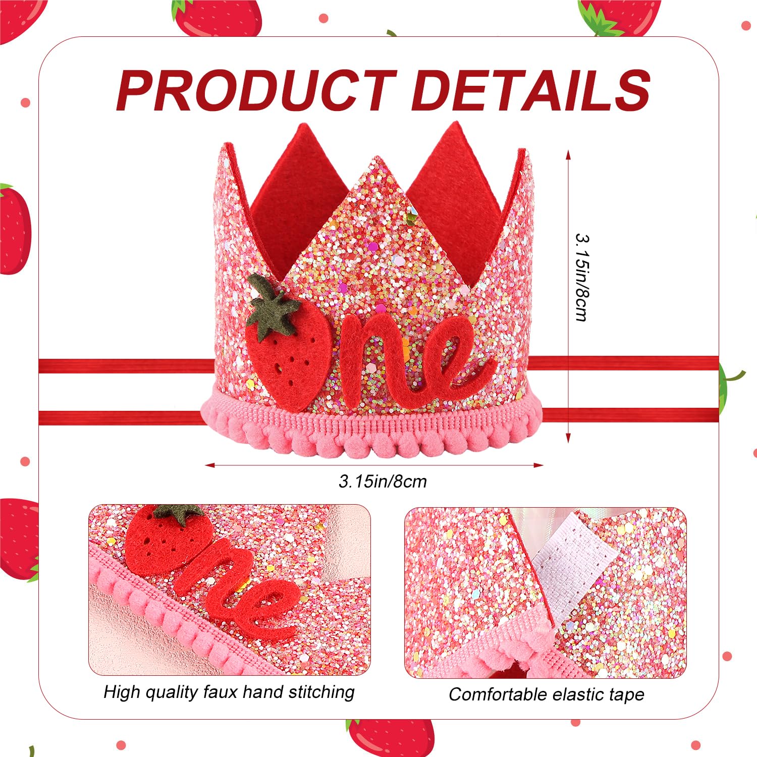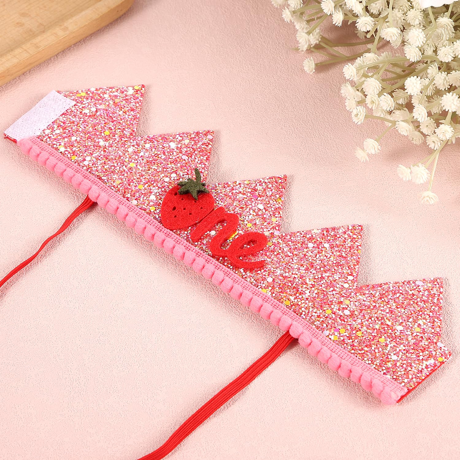 Delicate Design: The first birthday hat uses a cute strawberry as embellishments, and the hat's body is designed with glitter sequins and pink lining. It's very great to send to your babies as a birthday, party, photo shoot, etc., gift.